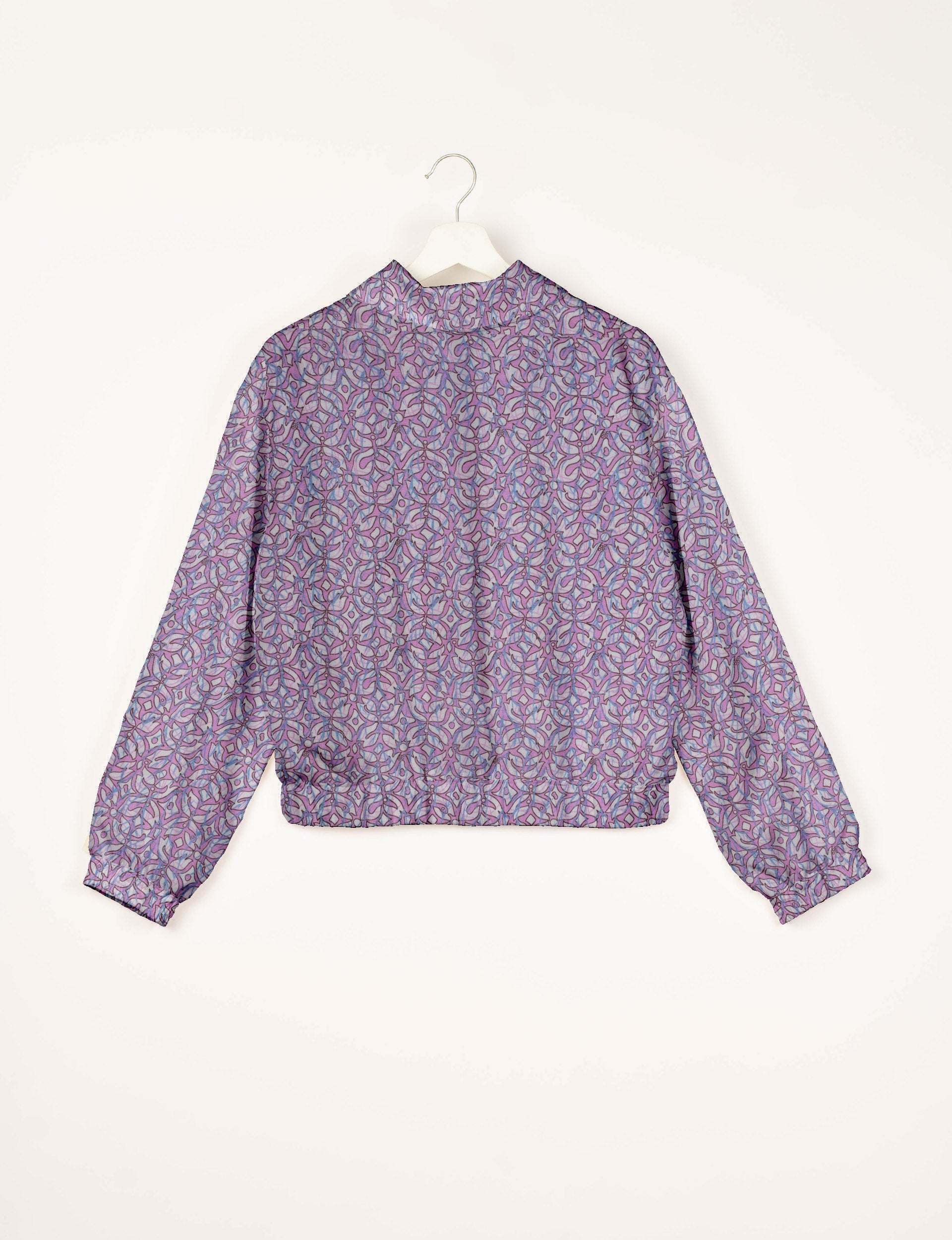 Unsere Bomberjacke ist ein unverzichtbares Must-have für Ihre Garderobe! Dieser Militärklassiker hat eine verkürzte Passform mit elastischem Saum, Bündchen und Bündchen. Sie verfügt über zwei Leistentaschen und zwei Metallreißverschlüsse auf der Vorderseite. Das Futter ist mit kontrastierendem Sari-Print und einem umklappbaren Kragen versehen. Die perfekte Schicht für Frühlingstage, kühle Abende oder klimatisierte Arbeitsplätze, ohne zu beschweren.
