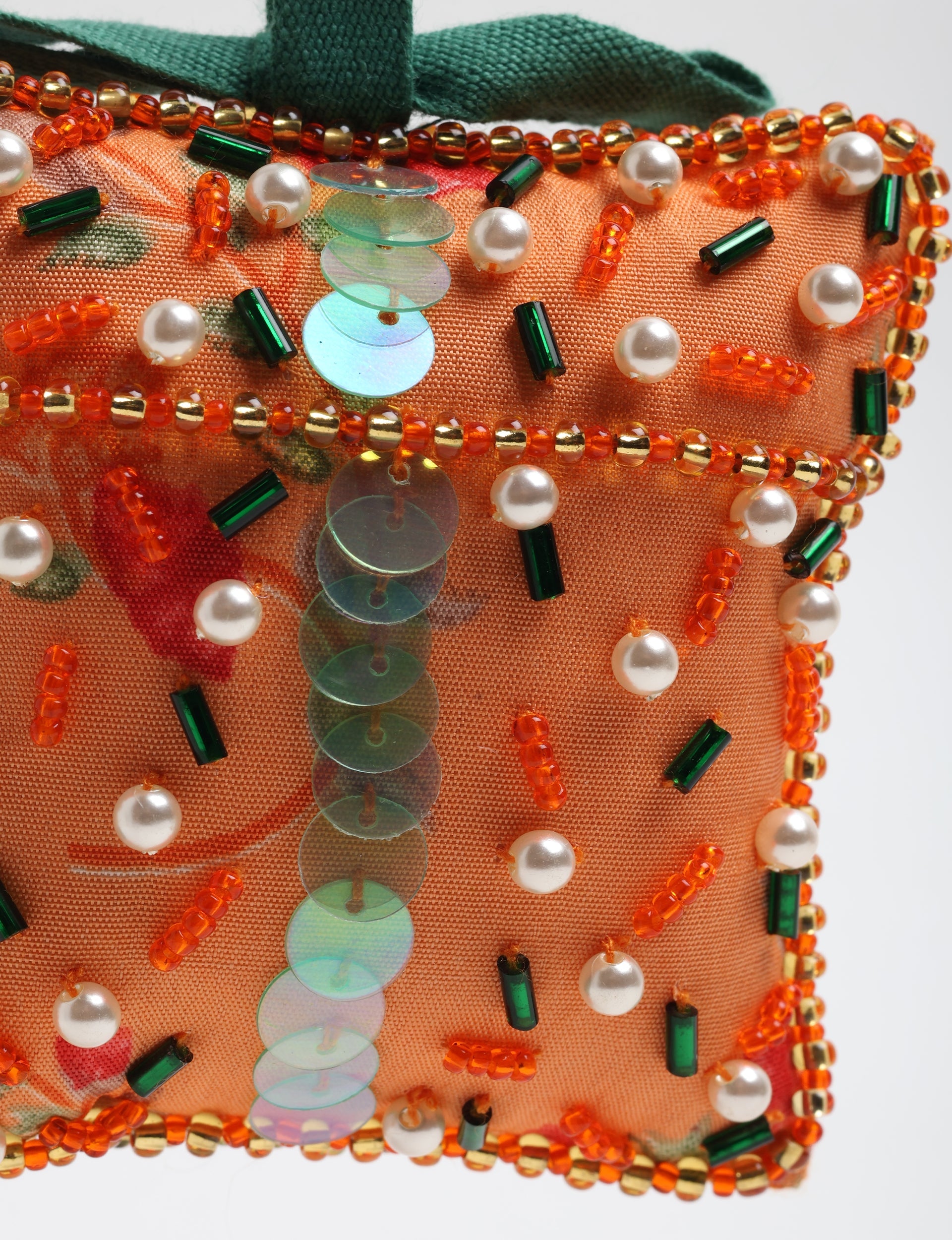 This is a special addition ornament. Made from pre-loved saris and filled with organic cotton filling, it’s adorned with pearls and metallic beads that reflect celestial beauty. Each handcrafted ornaments brings an elegant sparkle to your decorations. Lighting and screens may cause slight variations in color appearance.