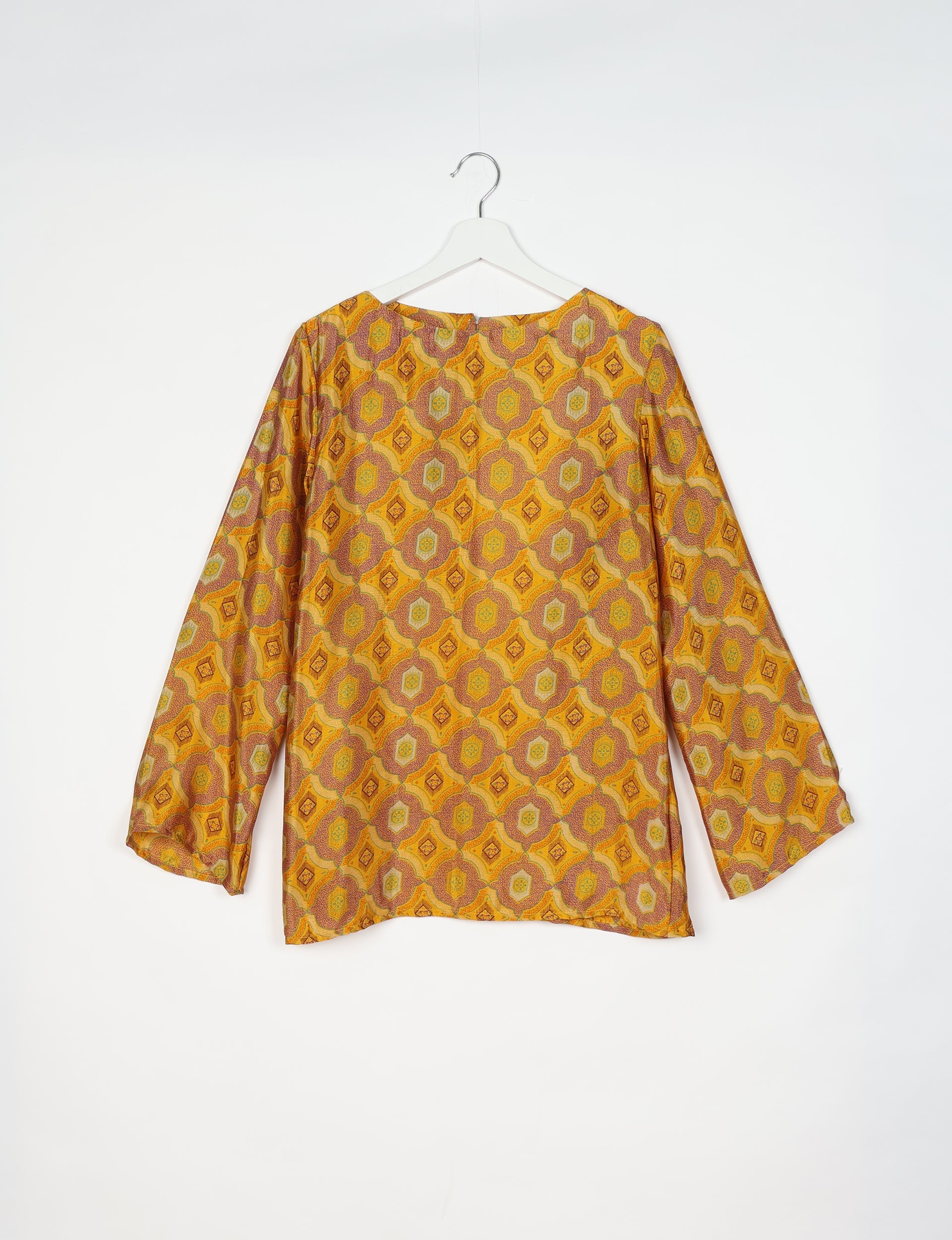 Ich bin aus leichtem, seidig fließendem Stoff gefertigt. Es gibt mich normalerweise nur einmal, in meinem speziellen Muster und bei Kleidungsstücken nur in begrenzten Größen. Bitte suchen Sie nach Größe, um die beste Passform für Sie zu finden. Siehe unsere Größentabelle.