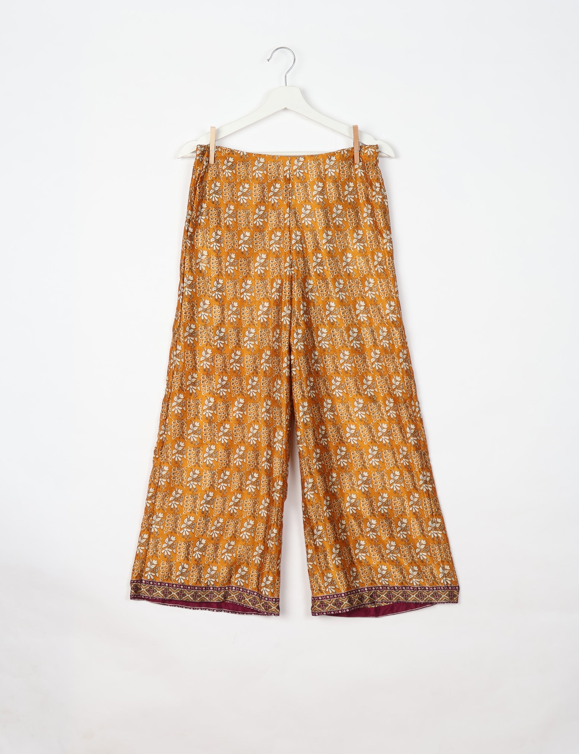 Ich wurde auf dem Markt in Mumbai gesammelt und nicht neu hergestellt, daher ist meine genaue Stoffzusammensetzung unbekannt. Pflegen Sie mich nachhaltig mit Handwäsche, Trocknen auf der Leine und Bügeln bei niedriger Temperatur. Ich kann auch in der Maschine gewaschen und chemisch gereinigt werden, sofern ich keine Stickereien oder Verzierungen habe, die beschädigt werden könnten.