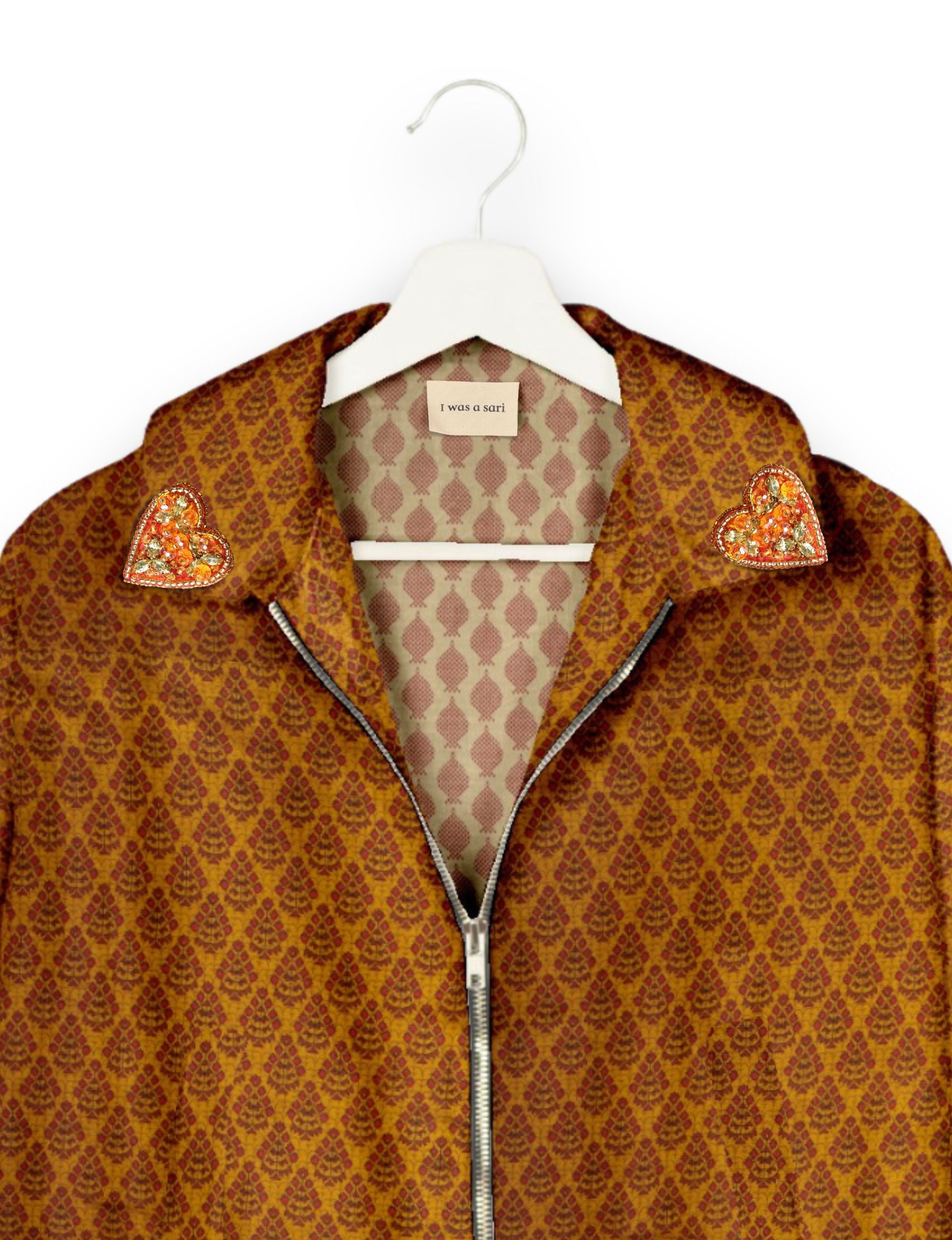 GOLD HEART BOMBER JACKET - Brown Paisley