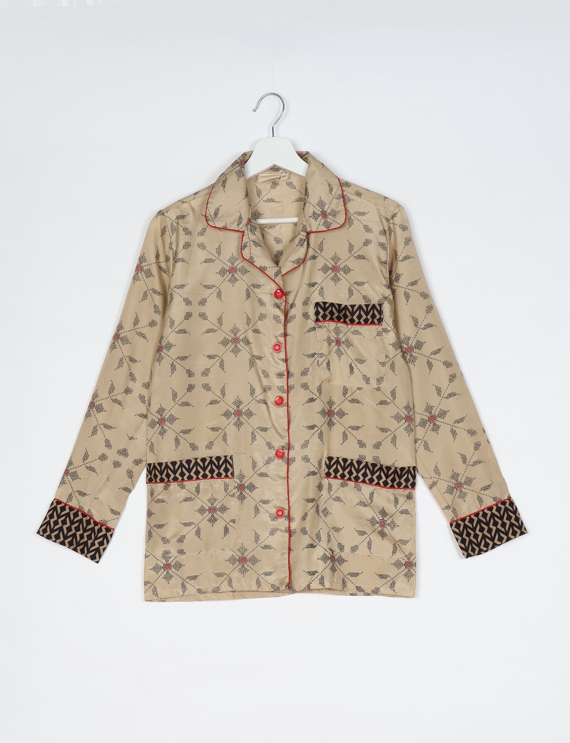 Ich bin aus leichtem, seidig fließendem Stoff gefertigt. Es gibt mich normalerweise nur einmal, in meinem speziellen Muster und bei Kleidungsstücken nur in begrenzten Größen. Bitte suchen Sie nach Größe, um die beste Passform für Sie zu finden. Siehe unsere Größentabelle.
