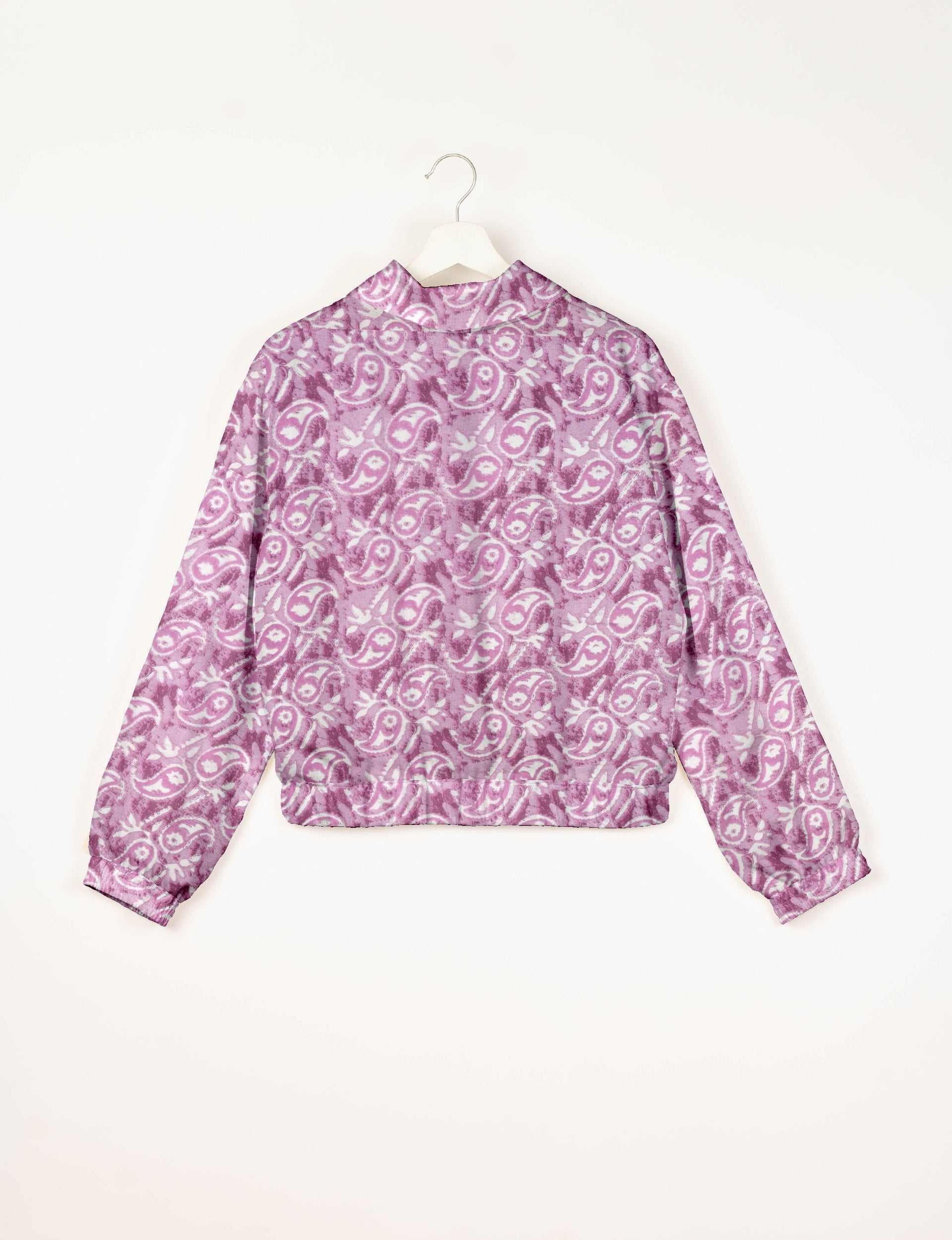 Our Bomber jacket is an iconic wardrobe essential! This military classic features a cropped shape, with elasticated bottom, hem and cuffs. It comes with 2 welt pockets and twin metallic zippers down the front. Also comes with contrast sari print lining and collar flip. Perfect layer for spring days, cool evenings, or air-conditioned workspaces without weighing you down.
