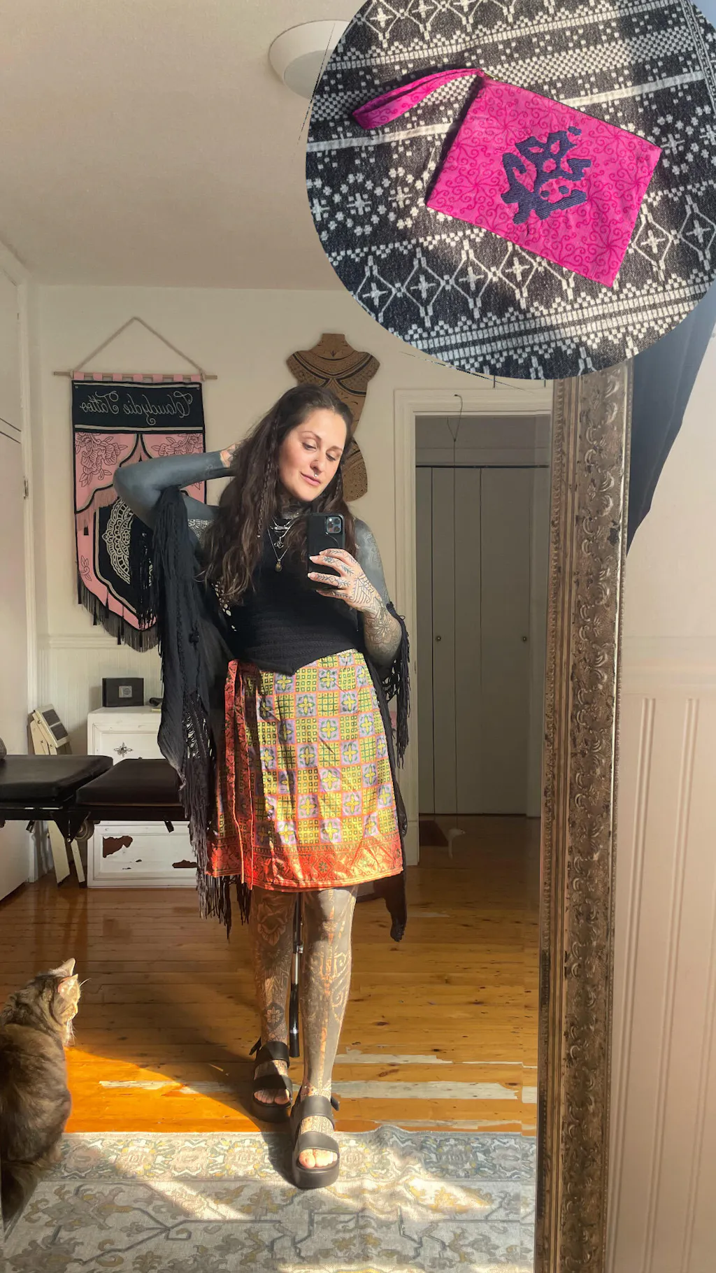 I'm not made from virgin fabrics and dyes, so my carbon footprint, pollution and water usage is way lower than other products. Instead, I'm made with circular production methods, from waste fabric which already existed. I turned into an I was a Sari instead of becoming landfill. Now I'm looking forward to my second life, maybe with you.