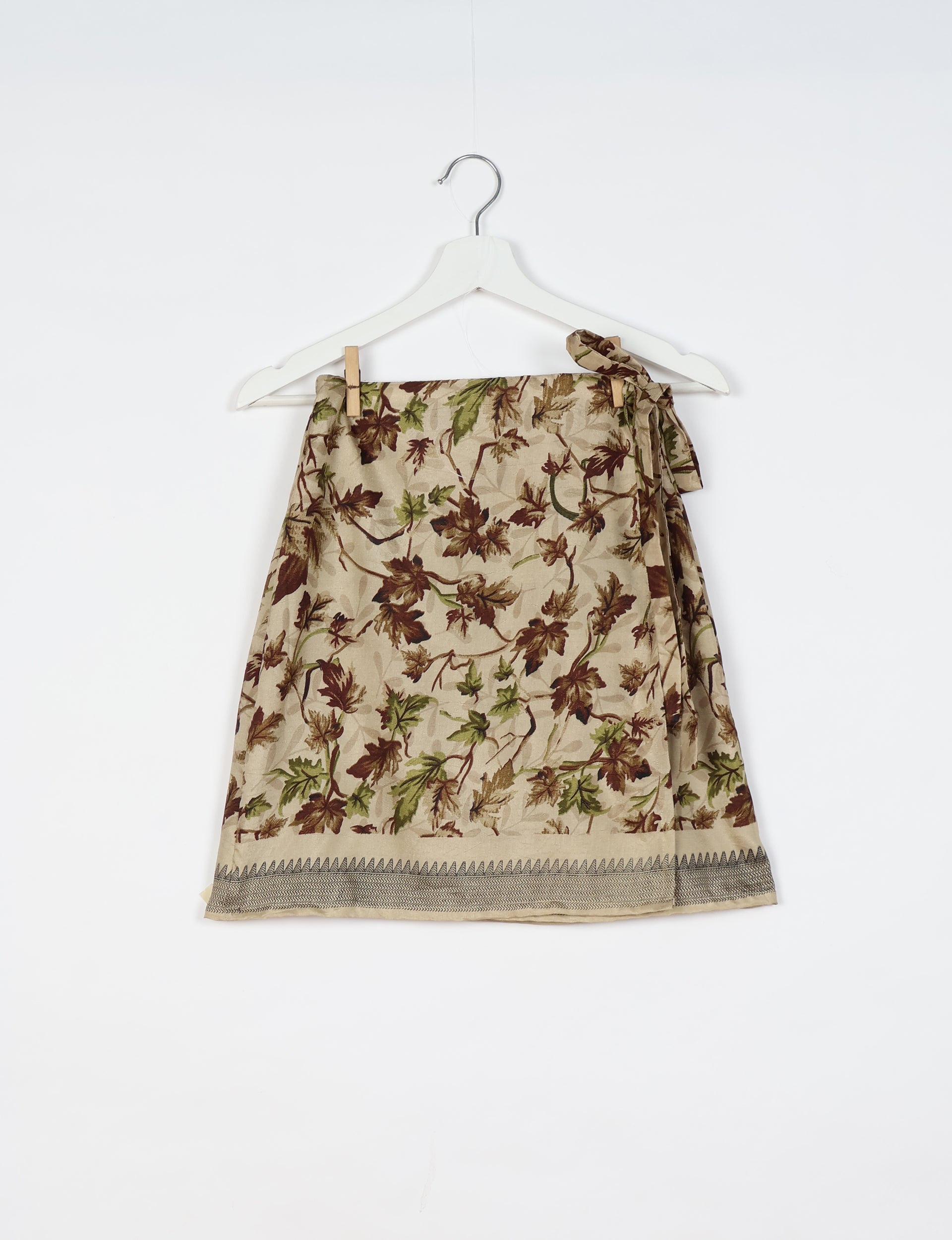 Esta falda cruzada llega hasta la mitad del muslo con un cierre lateral ajustable. La cinturilla es parcialmente elástica en la espalda para adaptarse a diferentes tallas de cintura. Presenta un único panel frontal superpuesto que se envuelve y se ata a un lado. La iluminación y las pantallas pueden causar ligeras variaciones de color.