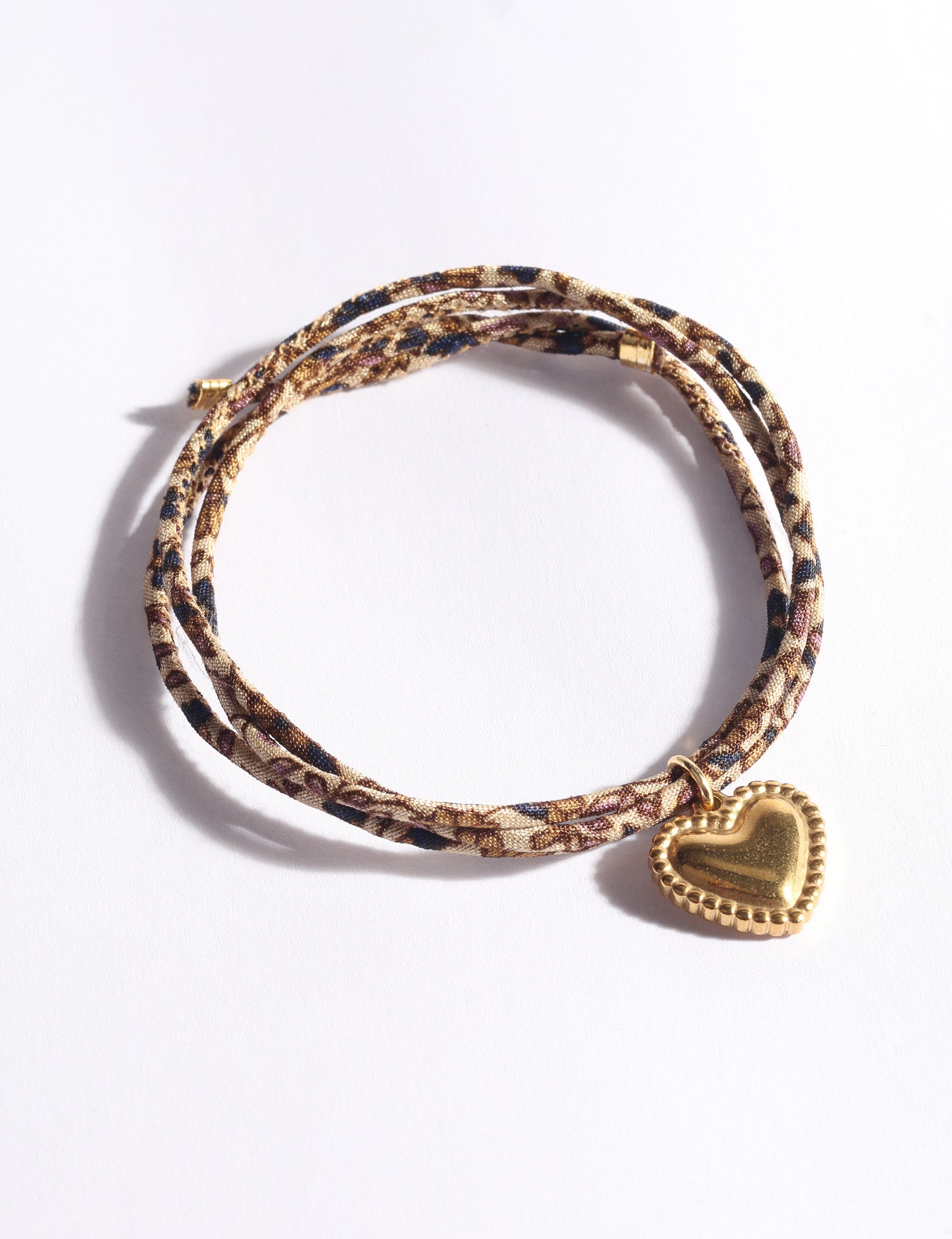 Slim cord bracelet designed to wrap around the wrist and tie for an adjustable fit. Features a single heart charm suspended at the centre.