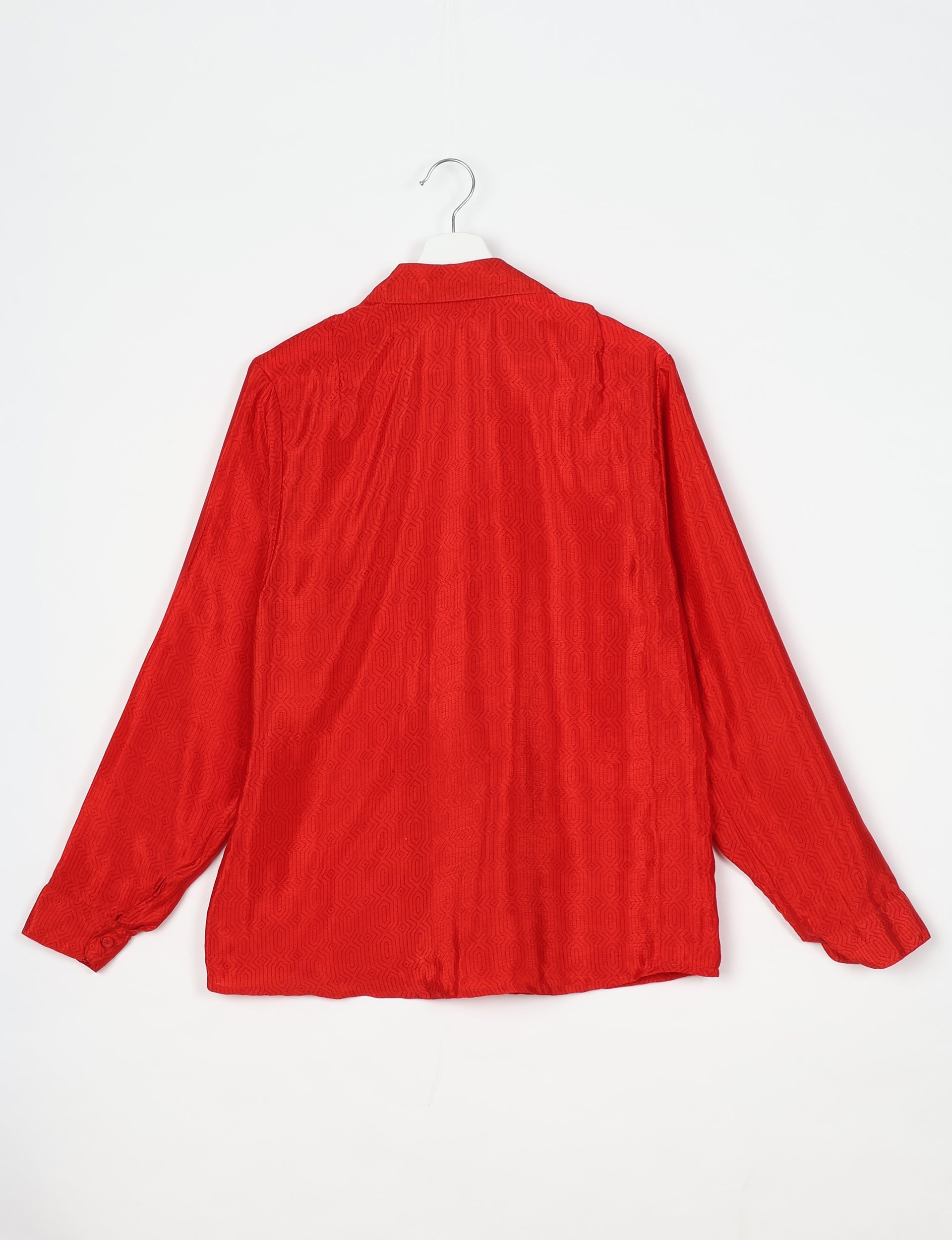 Camisa de manga larga y corte entallado con cuello semiabierto, cierre frontal con botones y bolsillo delantero. Confeccionada con puños estándar y botones. Incluye un cinturón desmontable del mismo tejido que se puede llevar a la cintura o como corbata. La iluminación y las pantallas pueden causar ligeras variaciones de color.