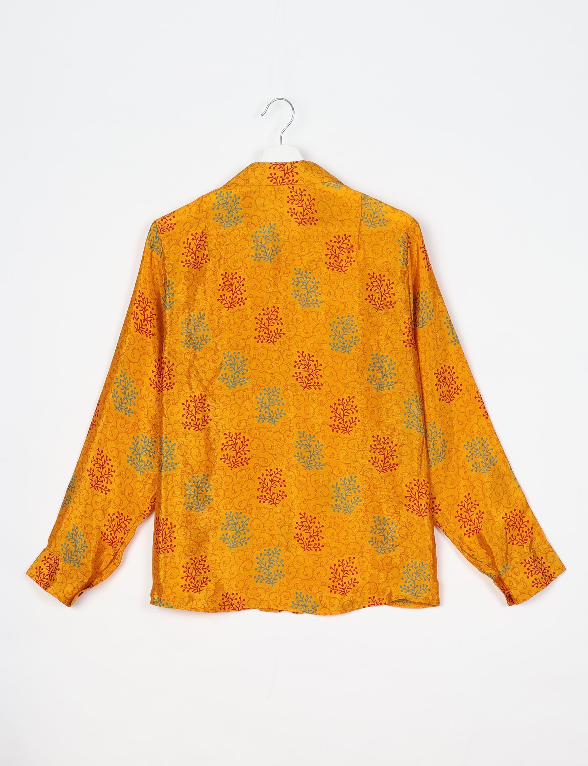 Camisa de manga larga y corte entallado con cuello semiabierto, cierre frontal con botones y bolsillo delantero. Confeccionada con puños estándar y botones. Incluye un cinturón desmontable del mismo tejido que se puede llevar a la cintura o como corbata. La iluminación y las pantallas pueden causar ligeras variaciones de color.