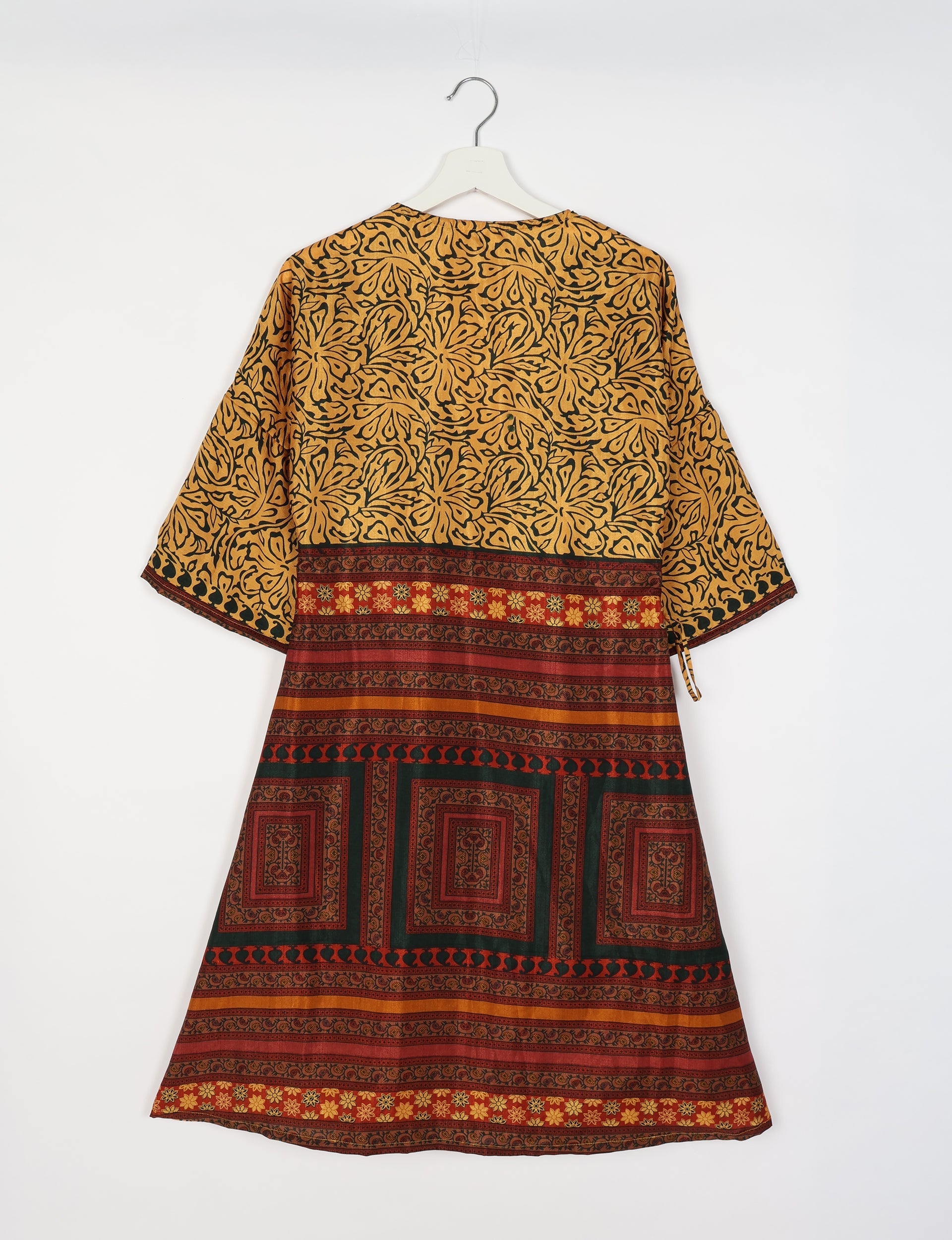 Abrigo cruzado por debajo de la rodilla con escote en V pronunciado. Presenta un cierre lateral con borlas de hilo que permite un ajuste perfecto. Diseñado con mangas 3/4 anchas y una silueta relajada en forma de A. La iluminación y las pantallas pueden causar ligeras variaciones de color.