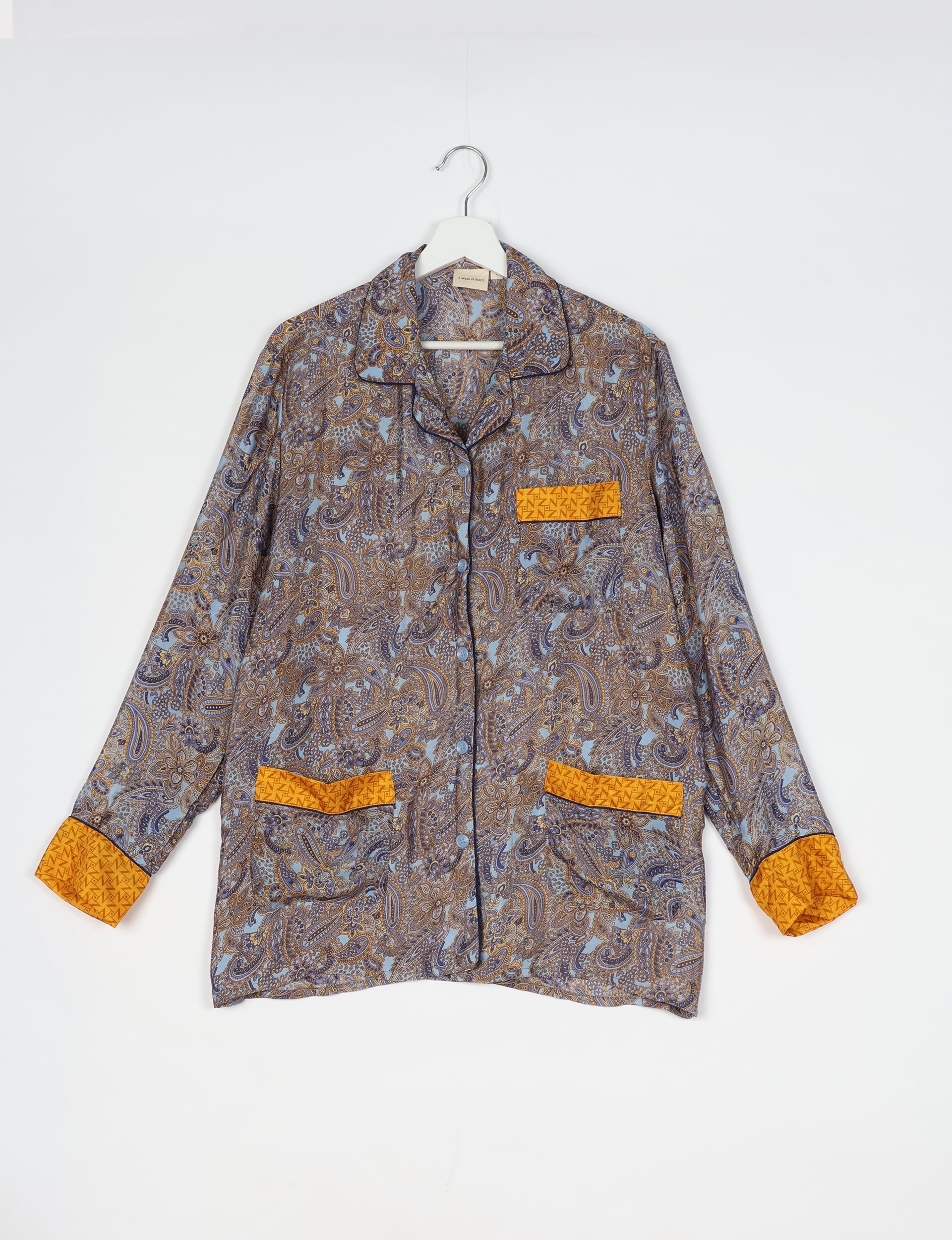 J'ai été récupéré sur les marchés de Mumbai et non confectionné récemment ; ma composition exacte est donc inconnue. Prenez-en soin de manière durable : lavage à la main, séchage à l'air libre et repassage à basse température. Je peux également être lavé en machine et nettoyé à sec si je ne présente pas de broderies ou d'ornements susceptibles d'être endommagés.