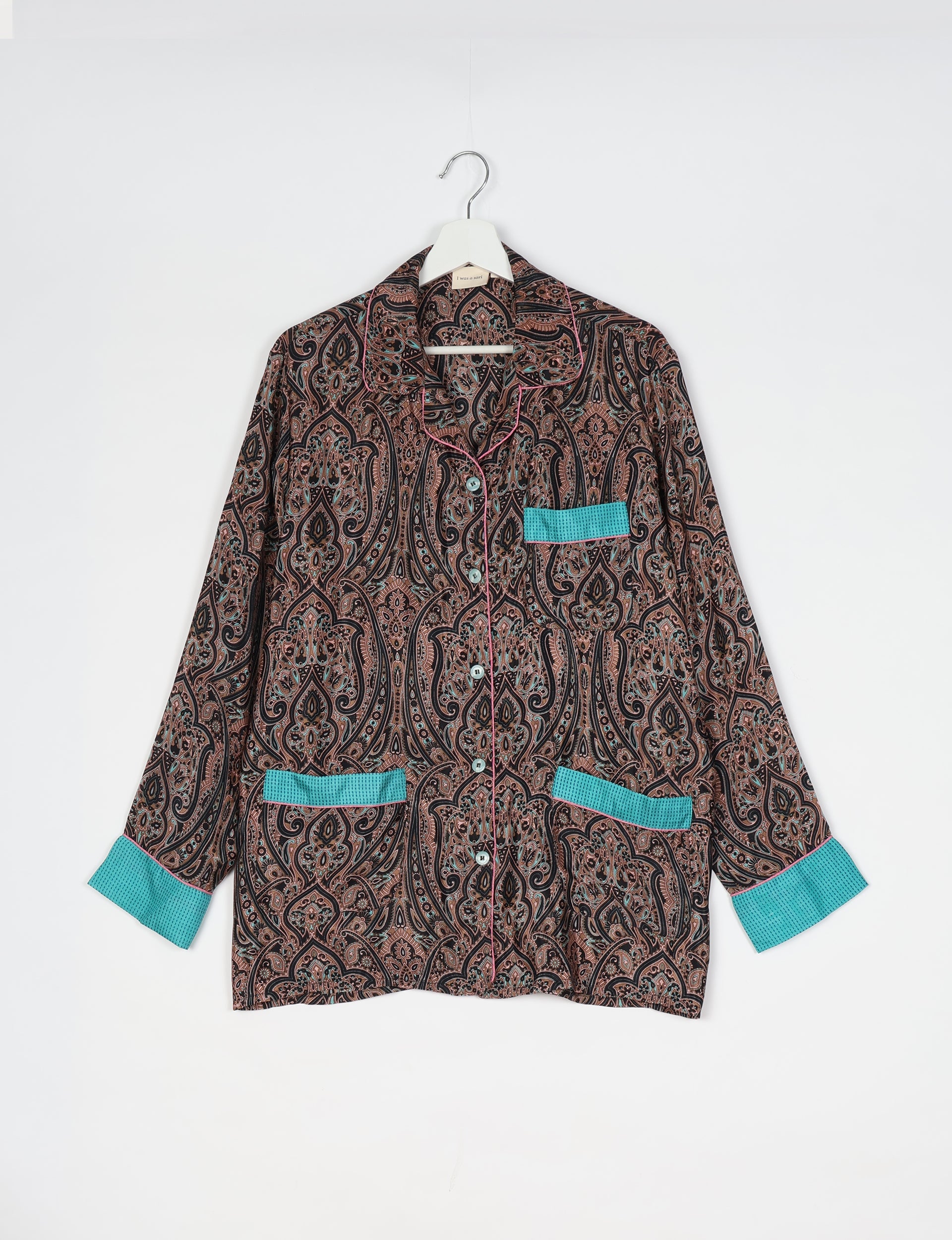 Je suis confectionné dans un tissu léger, soyeux et fluide. Il n'existe généralement qu'un seul modèle, dans mon imprimé spécifique. Pour les vêtements, je suis disponible en tailles limitées. Veuillez effectuer une recherche par taille pour trouver la taille qui vous convient. Consultez notre guide des tailles.
