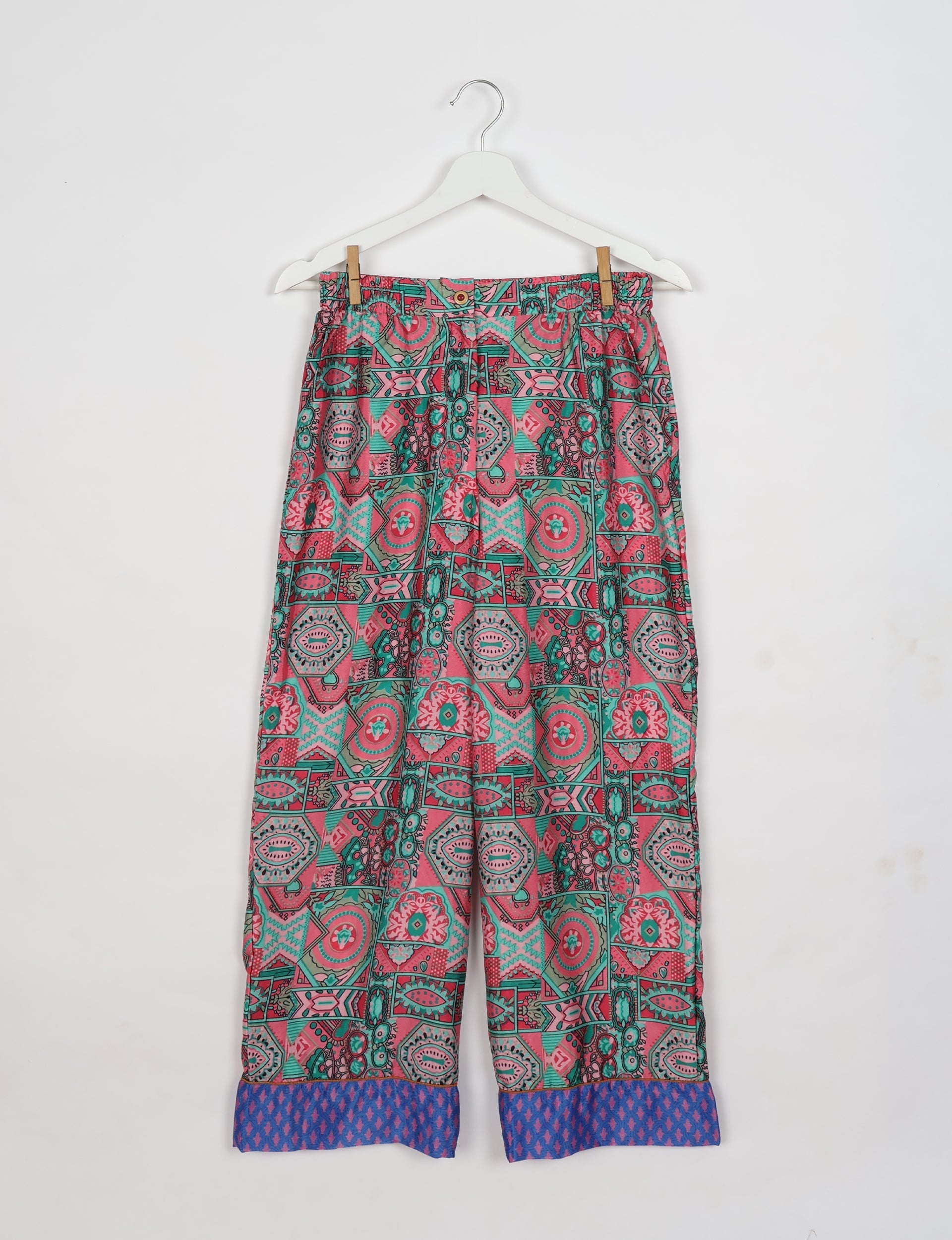 J'ai été récupéré sur les marchés de Mumbai et non confectionné récemment ; ma composition exacte est donc inconnue. Prenez-en soin de manière durable : lavage à la main, séchage à l'air libre et repassage à basse température. Je peux également être lavé en machine et nettoyé à sec si je ne présente pas de broderies ou d'ornements susceptibles d'être endommagés.