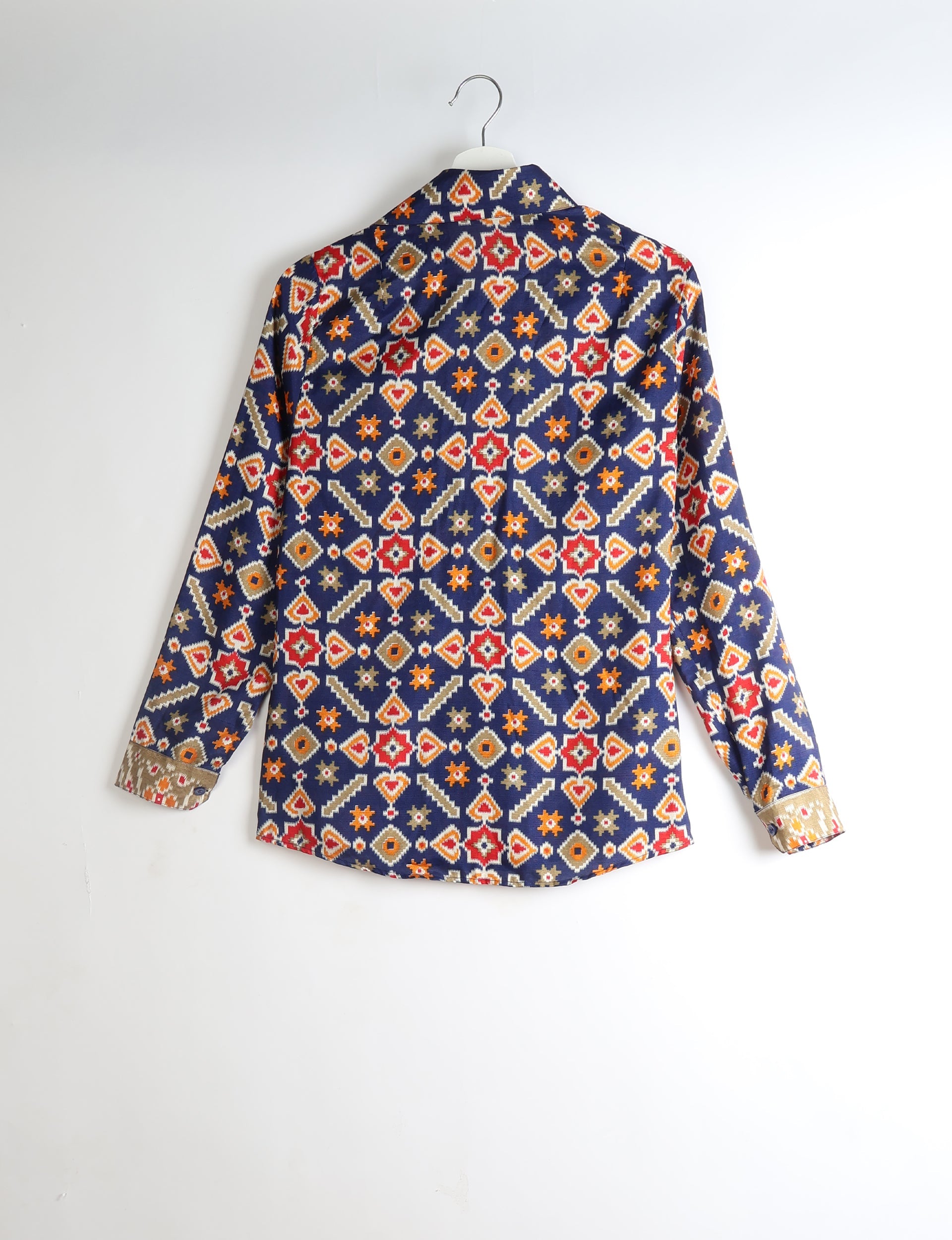 A beautiful shirt, nice length so it can be worn tucked in or out. I like the back which is a different pattern and works really well.
