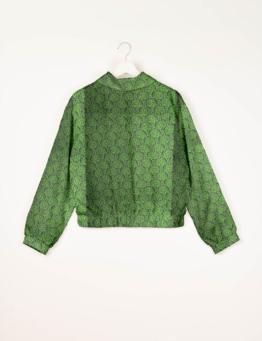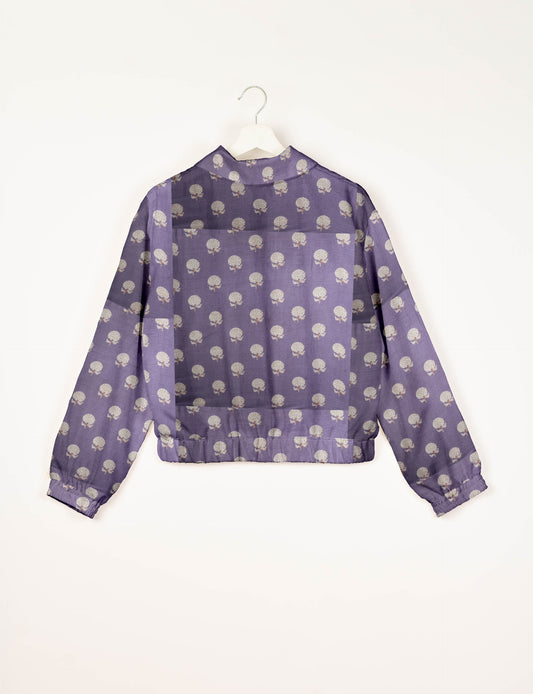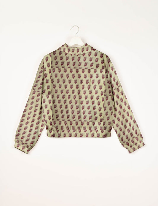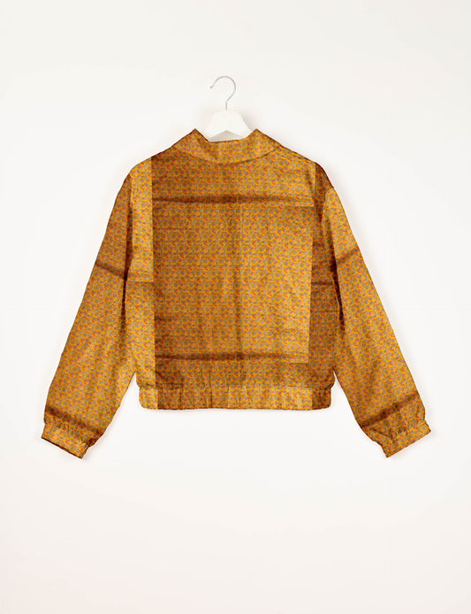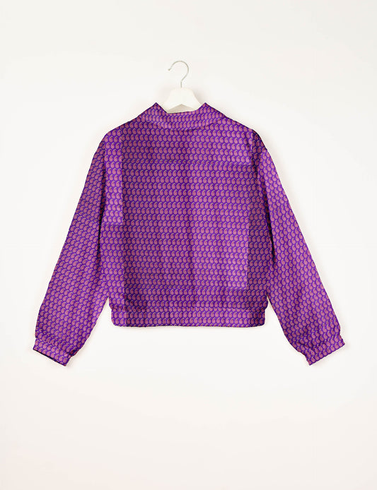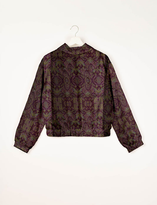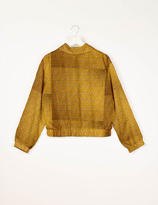 Blouson aviateur court avec doublure en sari et double fermeture éclair