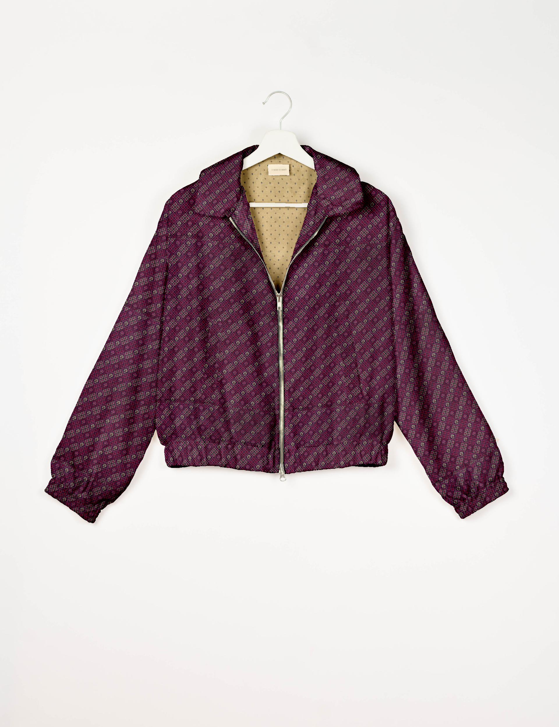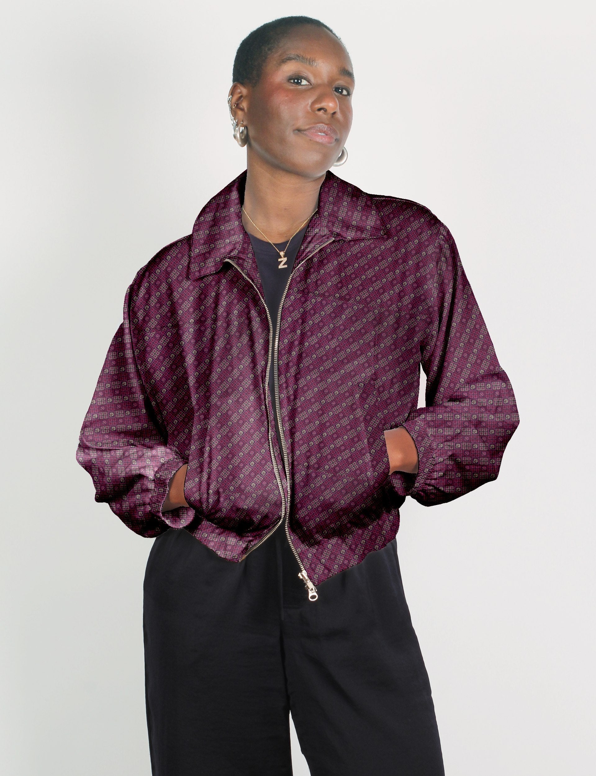 avec un bas, un ourlet et des poignets élastiqués. Il est doté de deux poches passepoilées et de deux fermetures éclair métalliques sur le devant. Il est également doté d'une doublure imprimée sari et d'un col rabattu. Il est parfait pour les journées printanières, les soirées fraîches ou les espaces de travail climatisés, sans vous alourdir.