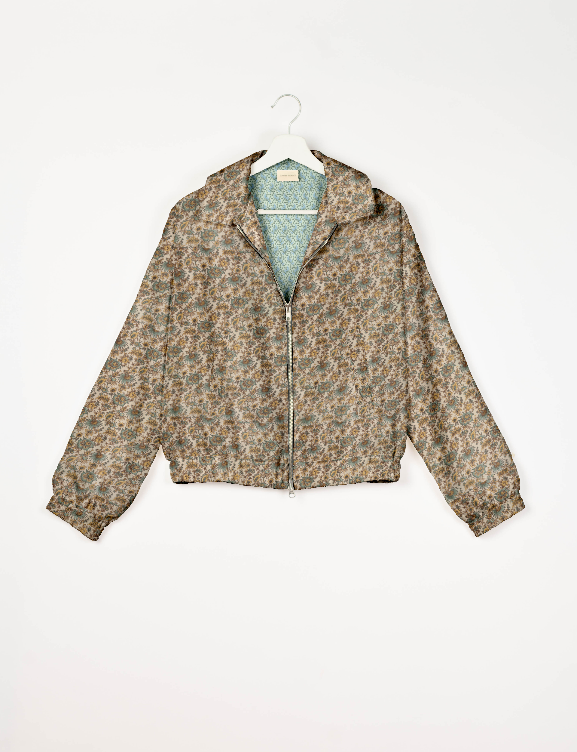 avec un bas, un ourlet et des poignets élastiqués. Il est doté de deux poches passepoilées et de deux fermetures éclair métalliques sur le devant. Il est également doté d'une doublure imprimée sari et d'un col rabattu. Il est parfait pour les journées printanières, les soirées fraîches ou les espaces de travail climatisés, sans vous alourdir.