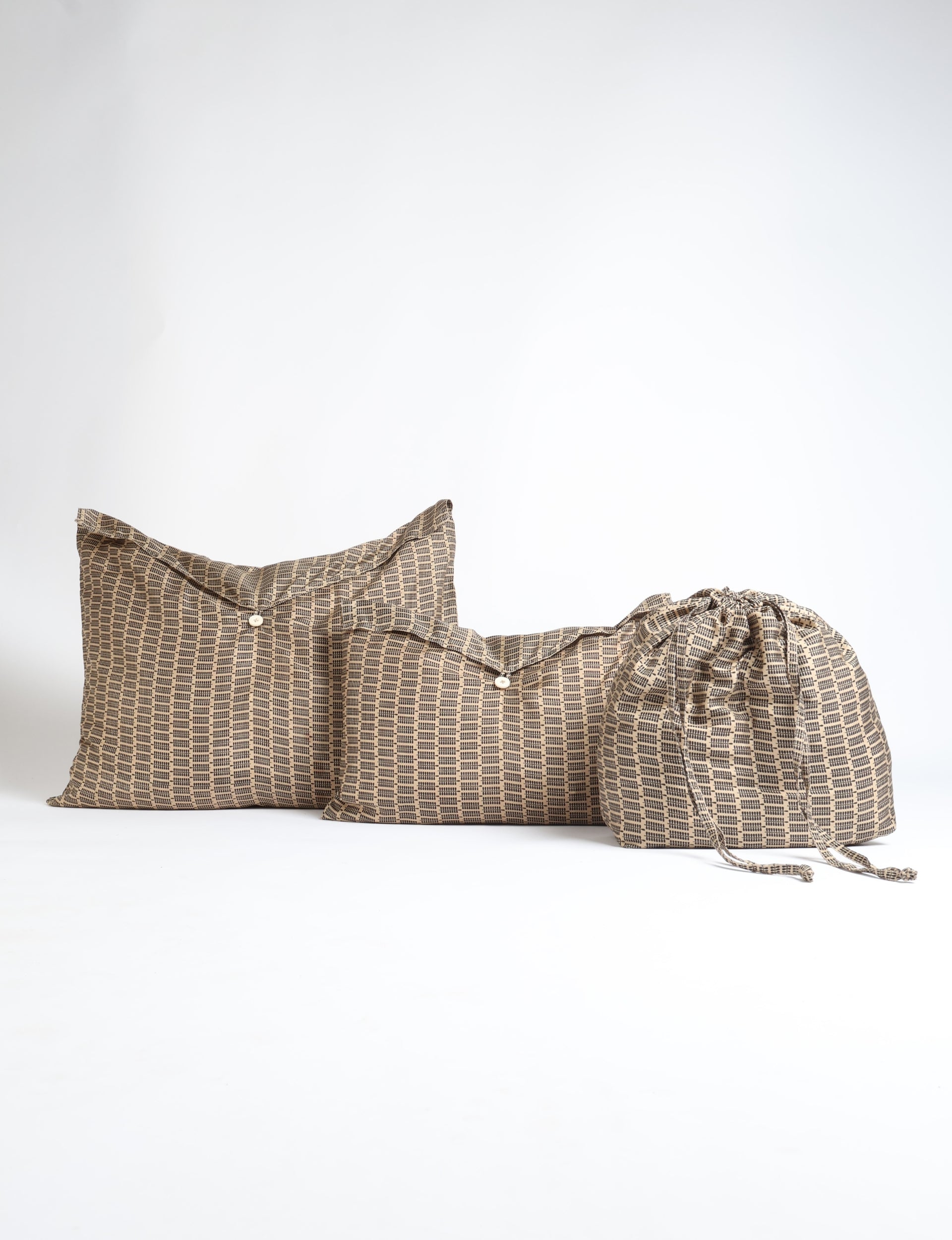 Trois pochettes de voyage légères avec une boucle rabattable et une fermeture à bouton. La plus petite est dotée d'une fermeture à cordon. Les pochettes sont de taille croissante pour pouvoir être emboîtées ou rangées à plat. Taille - Sac 1 - largeur : 41 cm, longueur : 53 cm Sac 2 - largeur : 28 cm, longueur : 41 cm Sac 3 - largeur : 35 cm, longueur : 35 cm