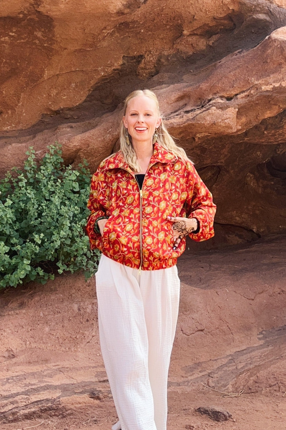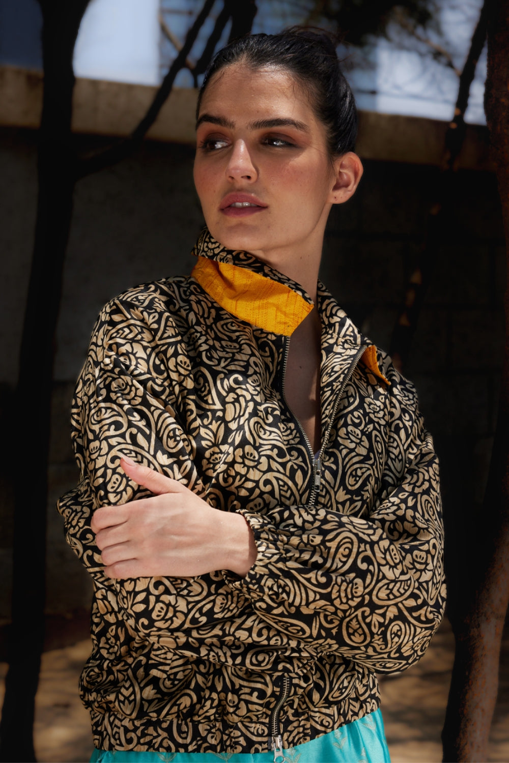 The Bomber jacket: Our signature style — reimagined from preloved saris and lined for structure. Cropped, colorful, and easy to pair with anything, this jacket has become an I was a Sari icon. Available in one-of-a-kind prints that make every piece a collector’s find.