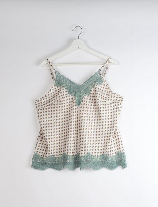 Completo da notte con top sottile e pantaloni rifiniti in pizzo
