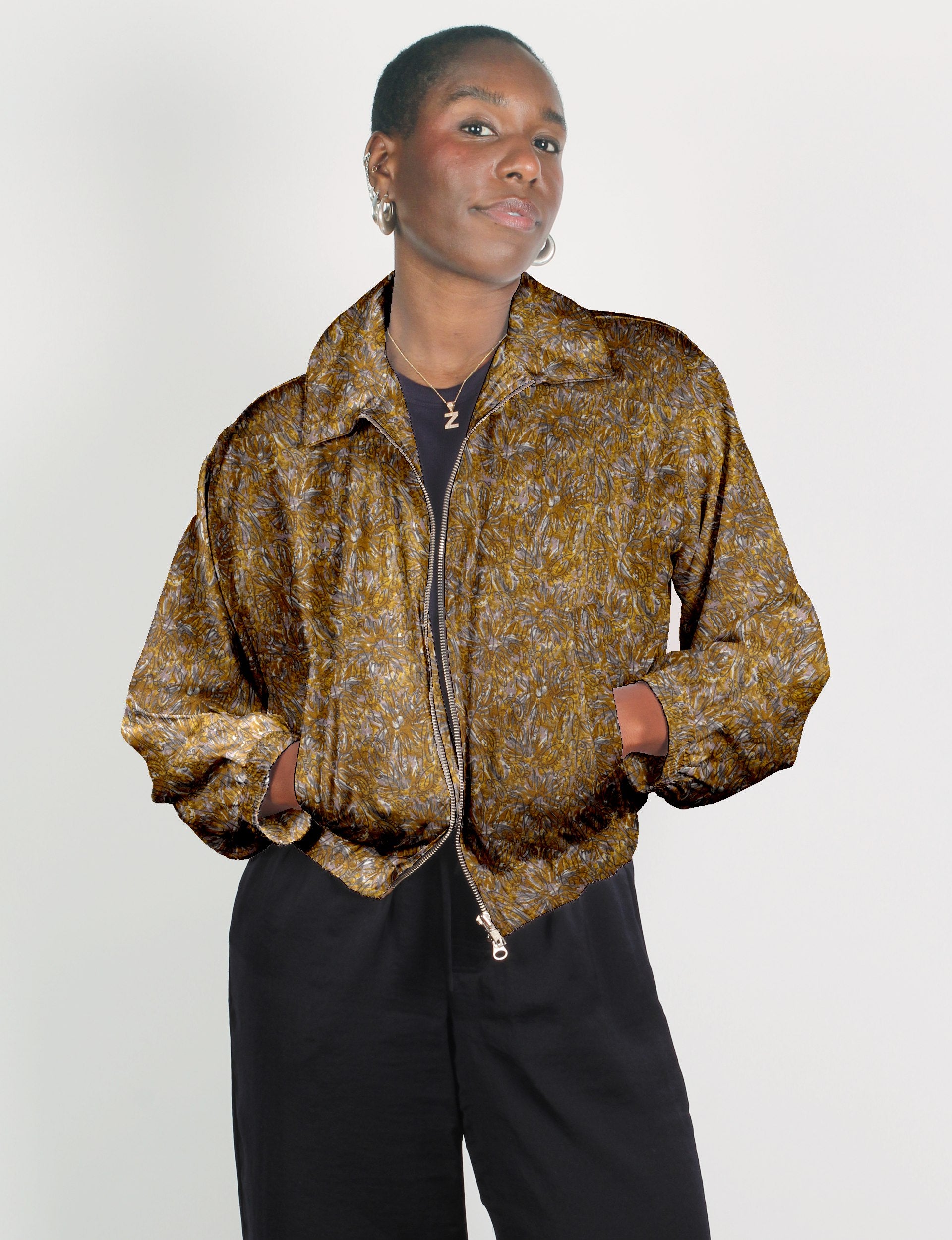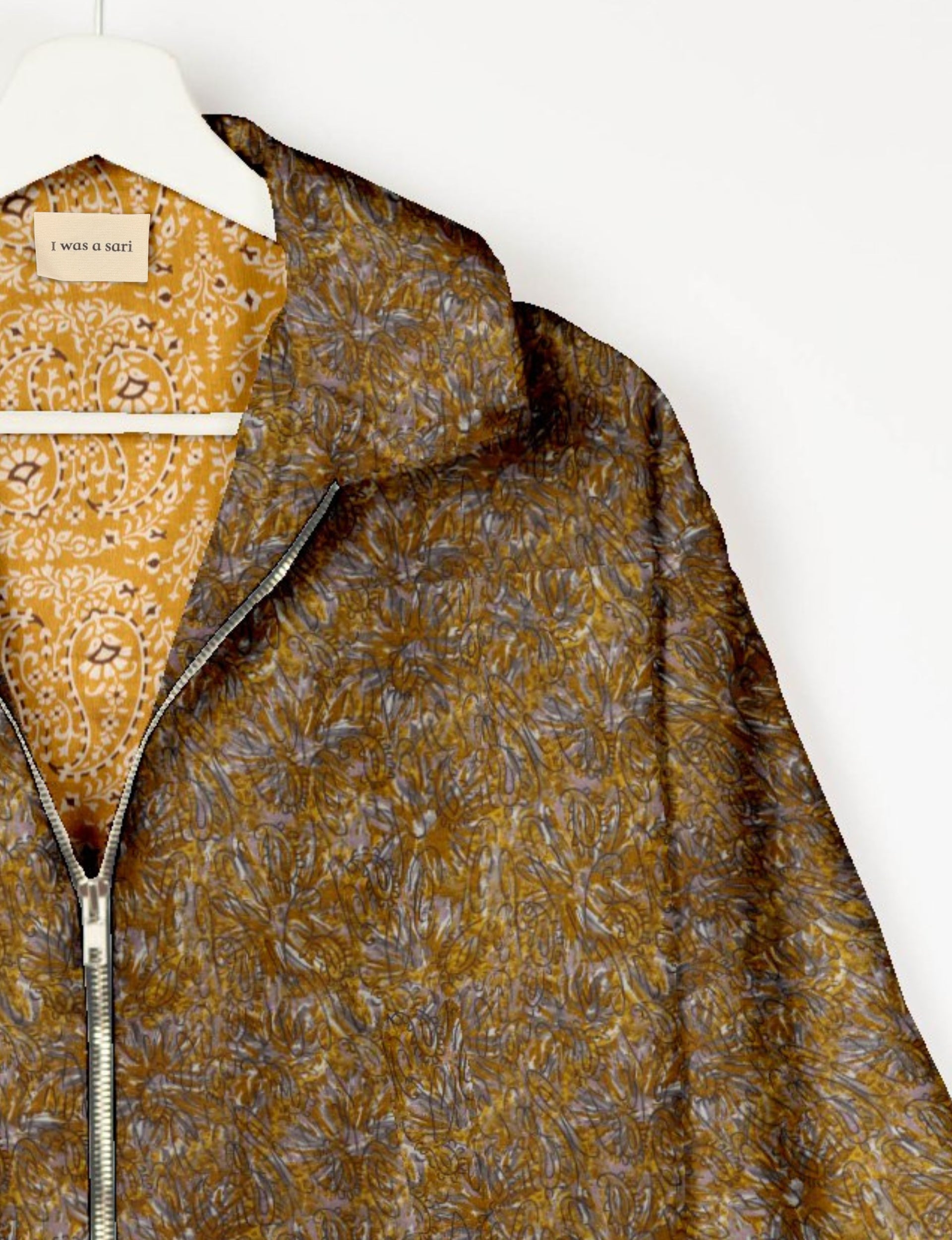 Giacca bomber: un’icona intramontabile del guardaroba! Un classico militare che porta con sé una storia, realizzato con sari rigenerati, pensato per la vita contemporanea e confezionato a mano da artigiane.