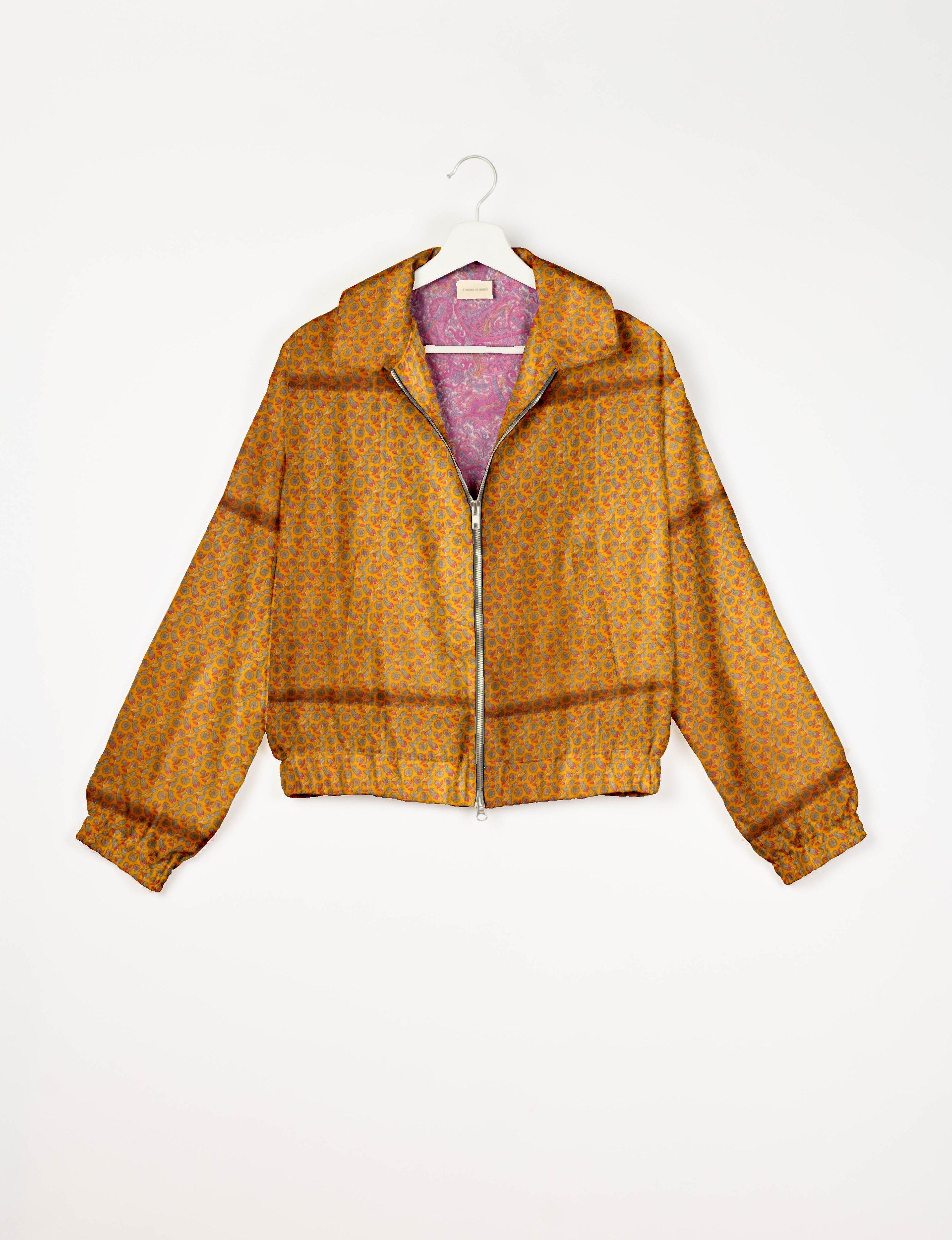 Giacca bomber: un’icona intramontabile del guardaroba! Un classico militare che porta con sé una storia, realizzato con sari rigenerati, pensato per la vita contemporanea e confezionato a mano da artigiane.