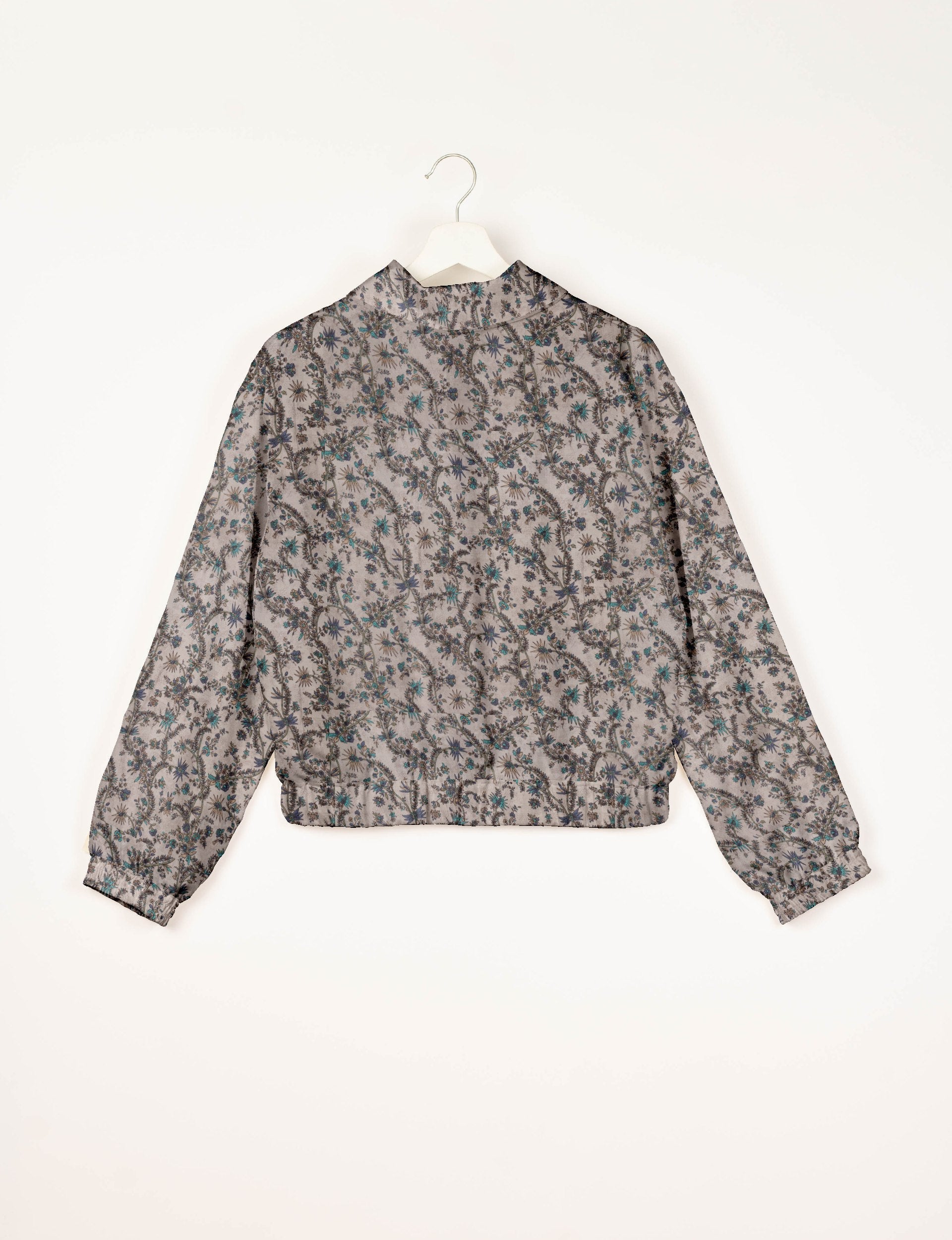 Caratterizzata da una linea corta, con fondo e polsini elasticizzati, la giacca presenta due tasche a filetto e una doppia zip metallica sul davanti. Internamente è rifinita con fodera in sari a contrasto, visibile anche sul collo a rovescio. Leggera ma confortevole, è lo strato ideale per le giornate primaverili, le serate fresche o gli spazi climatizzati.