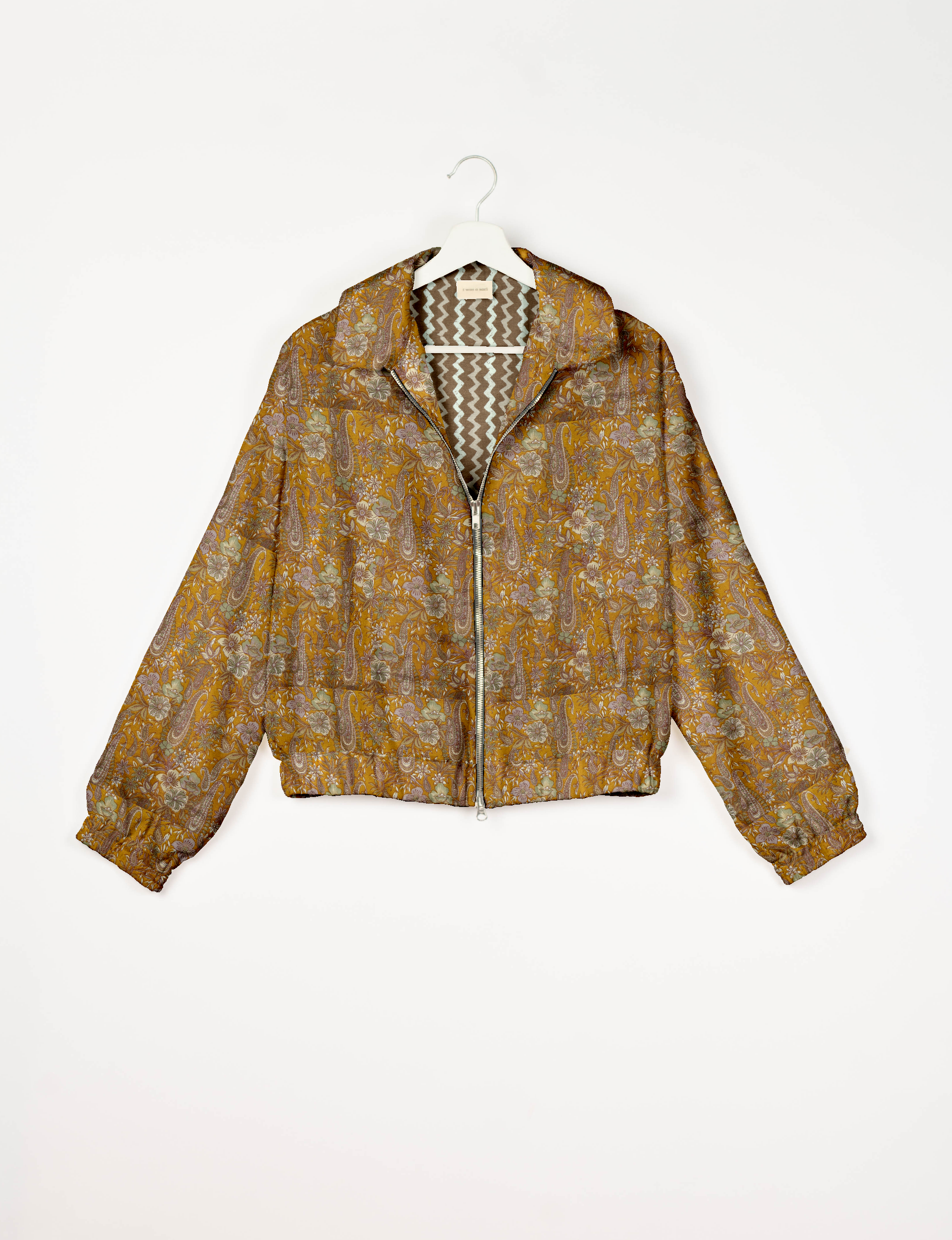 Giacca bomber: un’icona intramontabile del guardaroba! Un classico militare che porta con sé una storia, realizzato con sari rigenerati, pensato per la vita contemporanea e confezionato a mano da artigiane.