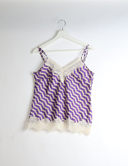 - Pigiama corto: Un coordinato giocoso con canotta e pantaloncini, rifinito con elaborati bordi in pizzo. Leggero, traspirante e unico nel suo genere.