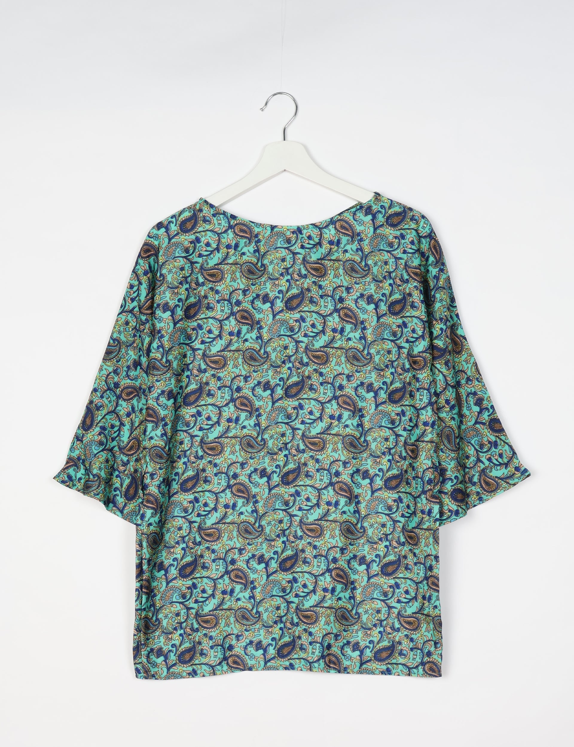 Sono realizzato in un tessuto leggero, fluido e setoso. Di solito esisto in un solo esemplare per ciascuna stampa. Nel caso dei capi d’abbigliamento, sono disponibile solo in taglie limitate. Ti consigliamo di cercare per taglia per trovare la vestibilità migliore per te. Consulta la nostra guida alle taglie.