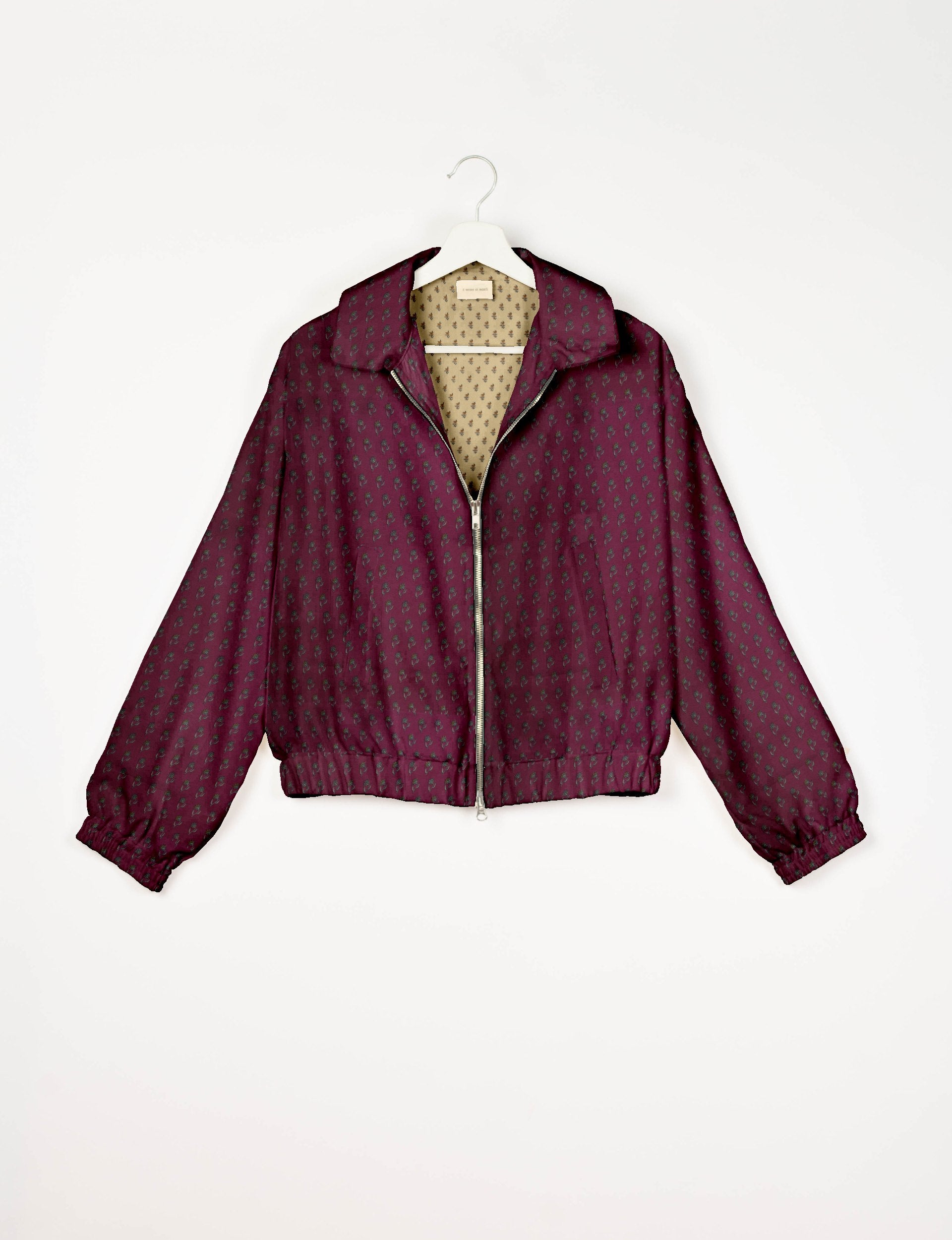 Caratterizzata da una linea corta, con fondo e polsini elasticizzati, la giacca presenta due tasche a filetto e una doppia zip metallica sul davanti. Internamente è rifinita con fodera in sari a contrasto, visibile anche sul collo a rovescio. Leggera ma confortevole, è lo strato ideale per le giornate primaverili, le serate fresche o gli spazi climatizzati.