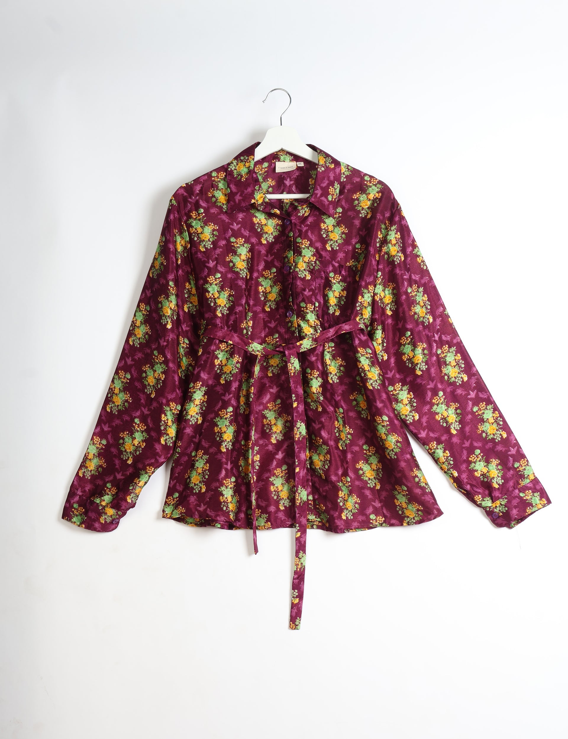 Camicia slim fit a maniche lunghe con colletto semi-spread e abbottonatura frontale. Presenta una tasca sul davanti e polsini classici con chiusura a bottone. È completata da una cintura rimovibile nello stesso tessuto, utilizzabile sia in vita sia come cravatta al collo.