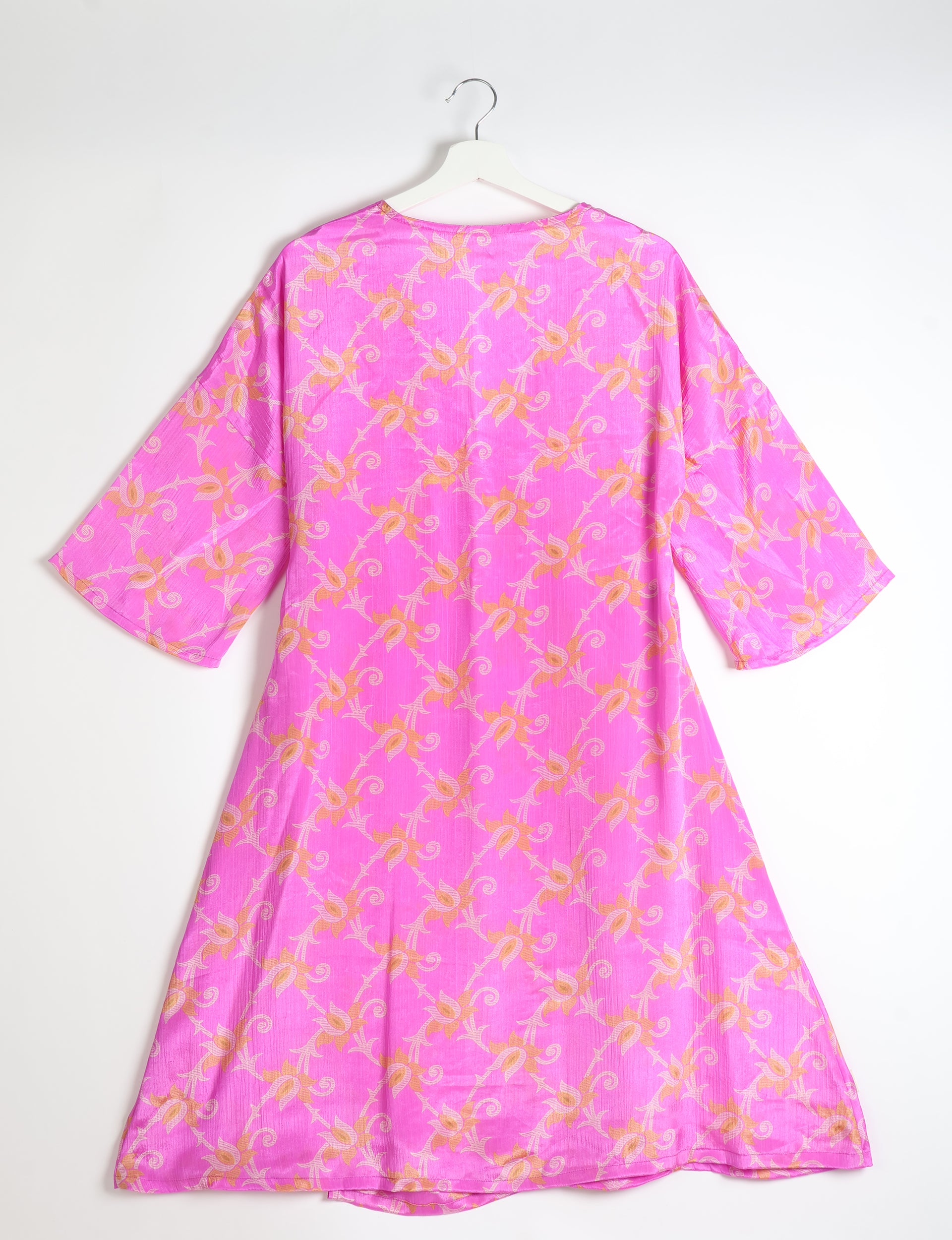 Sono realizzato in un tessuto leggero, fluido e setoso. Di solito esisto in un solo esemplare per ciascuna stampa. Nel caso dei capi d’abbigliamento, sono disponibile solo in taglie limitate. Ti consigliamo di cercare per taglia per trovare la vestibilità migliore per te. Consulta la nostra guida alle taglie.