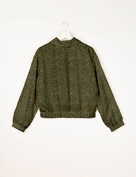 GOLD HEART BOMBER JACKET - Beige Leaves