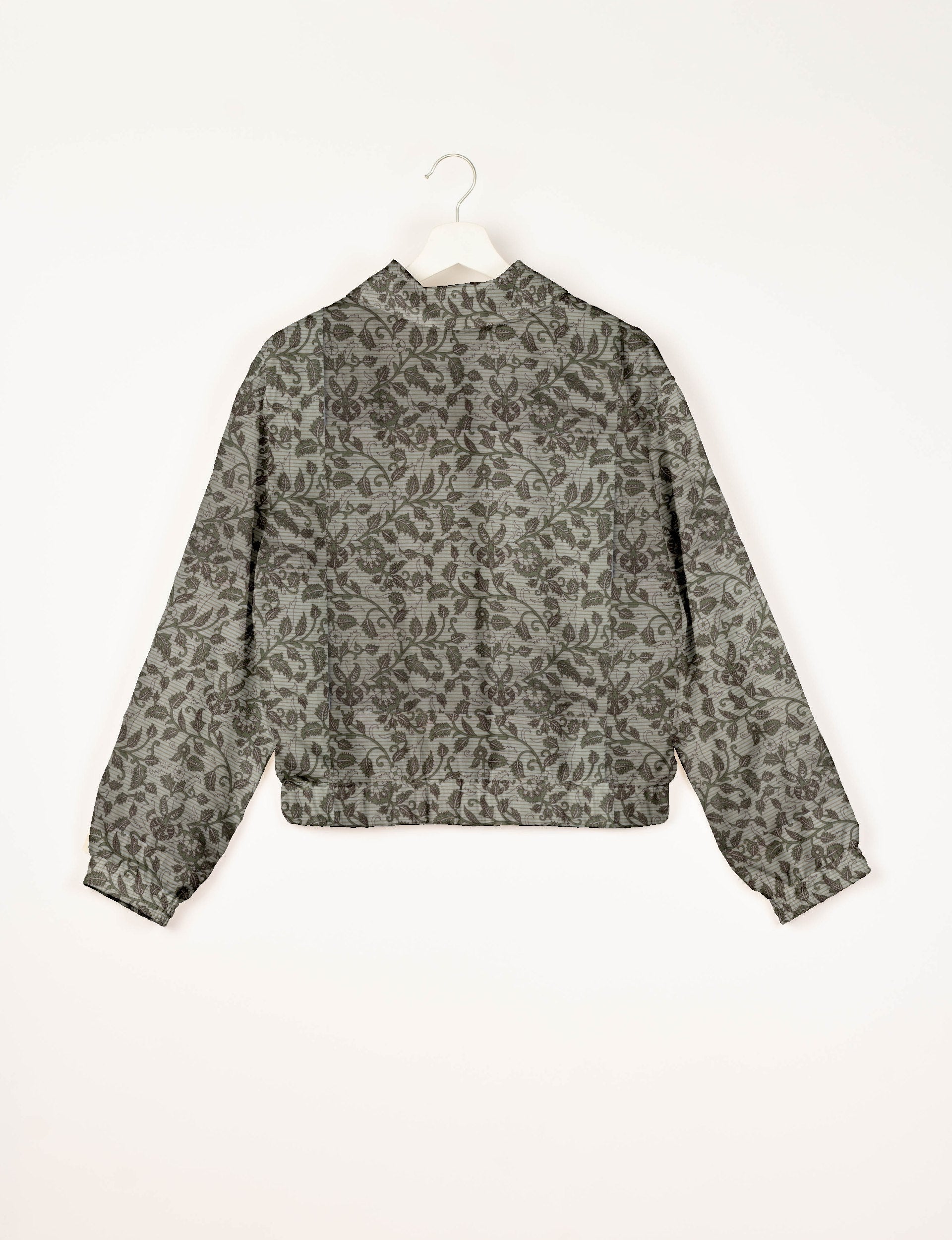 Our Bomber jacket is an iconic wardrobe essential! This military classic features a cropped shape, with elasticated bottom, hem and cuffs. It comes with 2 welt pockets and twin metallic zippers down the front. Also comes with contrast sari print lining and collar flip. Perfect layer for spring days, cool evenings, or air-conditioned workspaces without weighing you down.