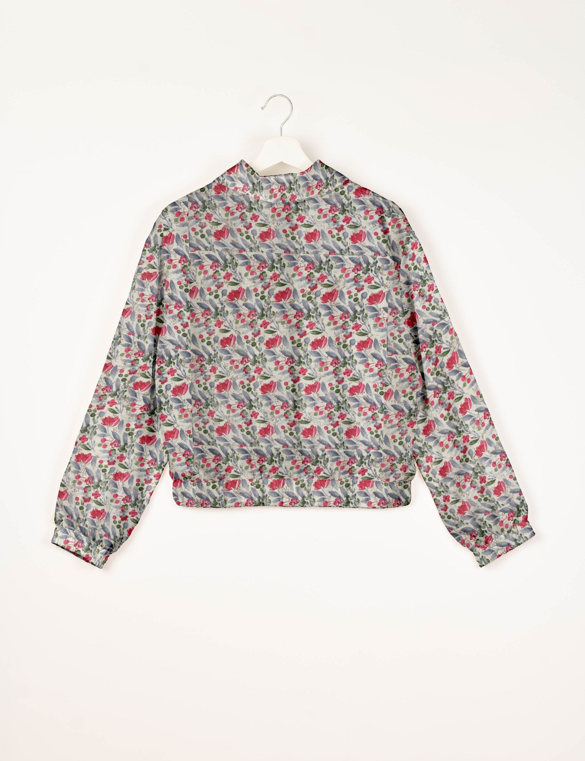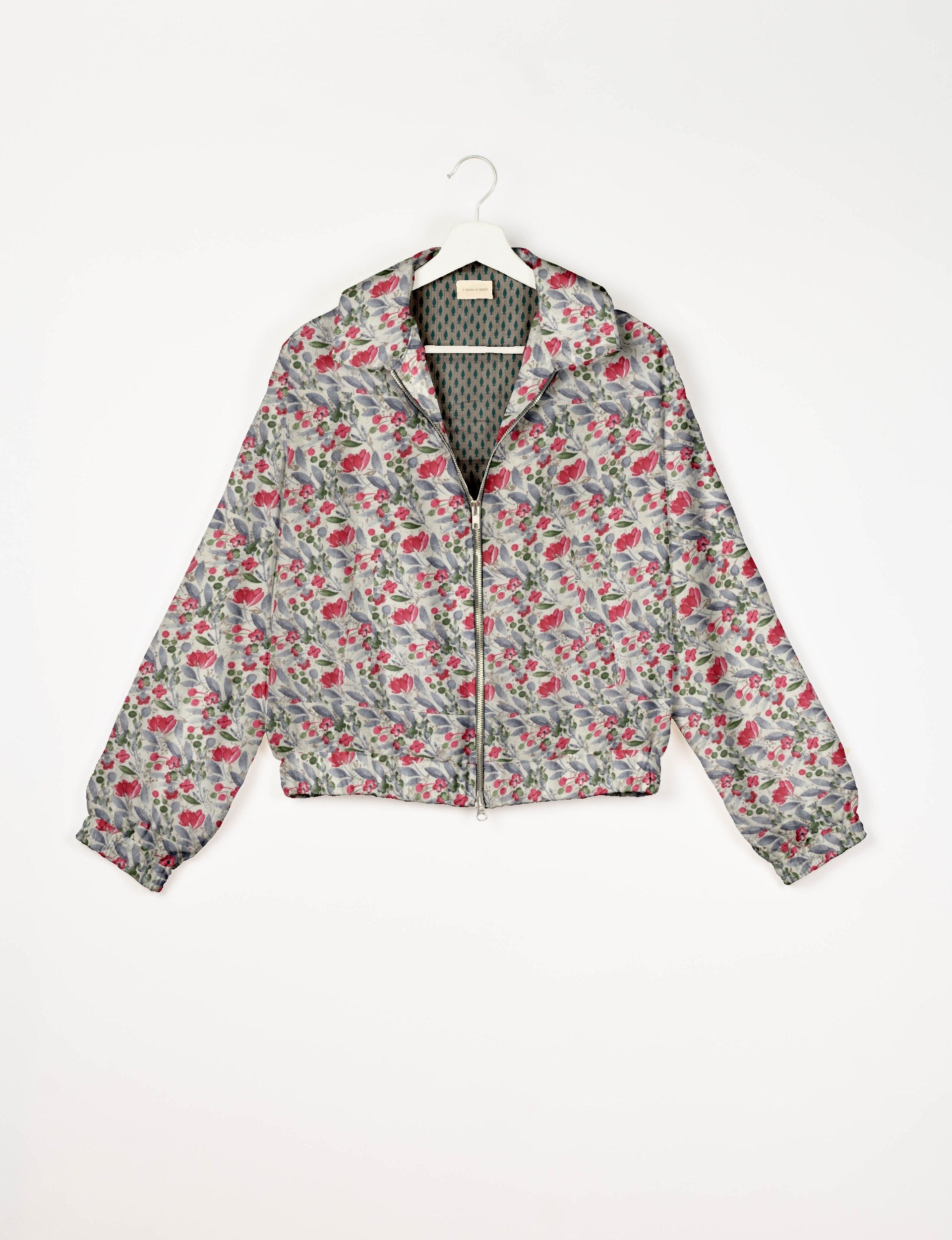 Our Bomber jacket is an iconic wardrobe essential! This military classic features a cropped shape, with elasticated bottom, hem and cuffs. It comes with 2 welt pockets and twin metallic zippers down the front. Also comes with contrast sari print lining and collar flip. Perfect layer for spring days, cool evenings, or air-conditioned workspaces without weighing you down.
