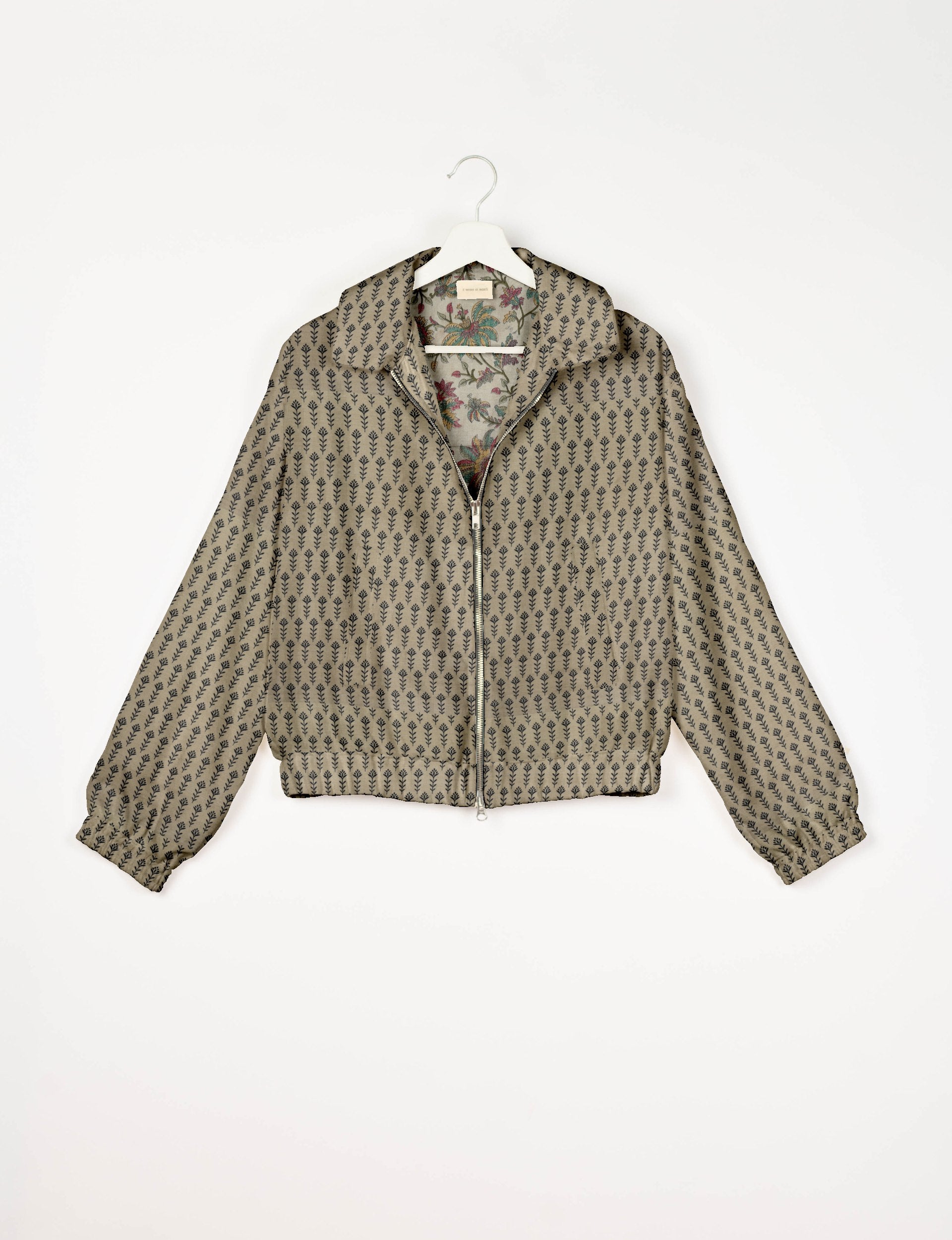Our Bomber jacket is an iconic wardrobe essential! This military classic features a cropped shape, with elasticated bottom, hem and cuffs. It comes with 2 welt pockets and twin metallic zippers down the front. Also comes with contrast sari print lining and collar flip. Perfect layer for spring days, cool evenings, or air-conditioned workspaces without weighing you down.