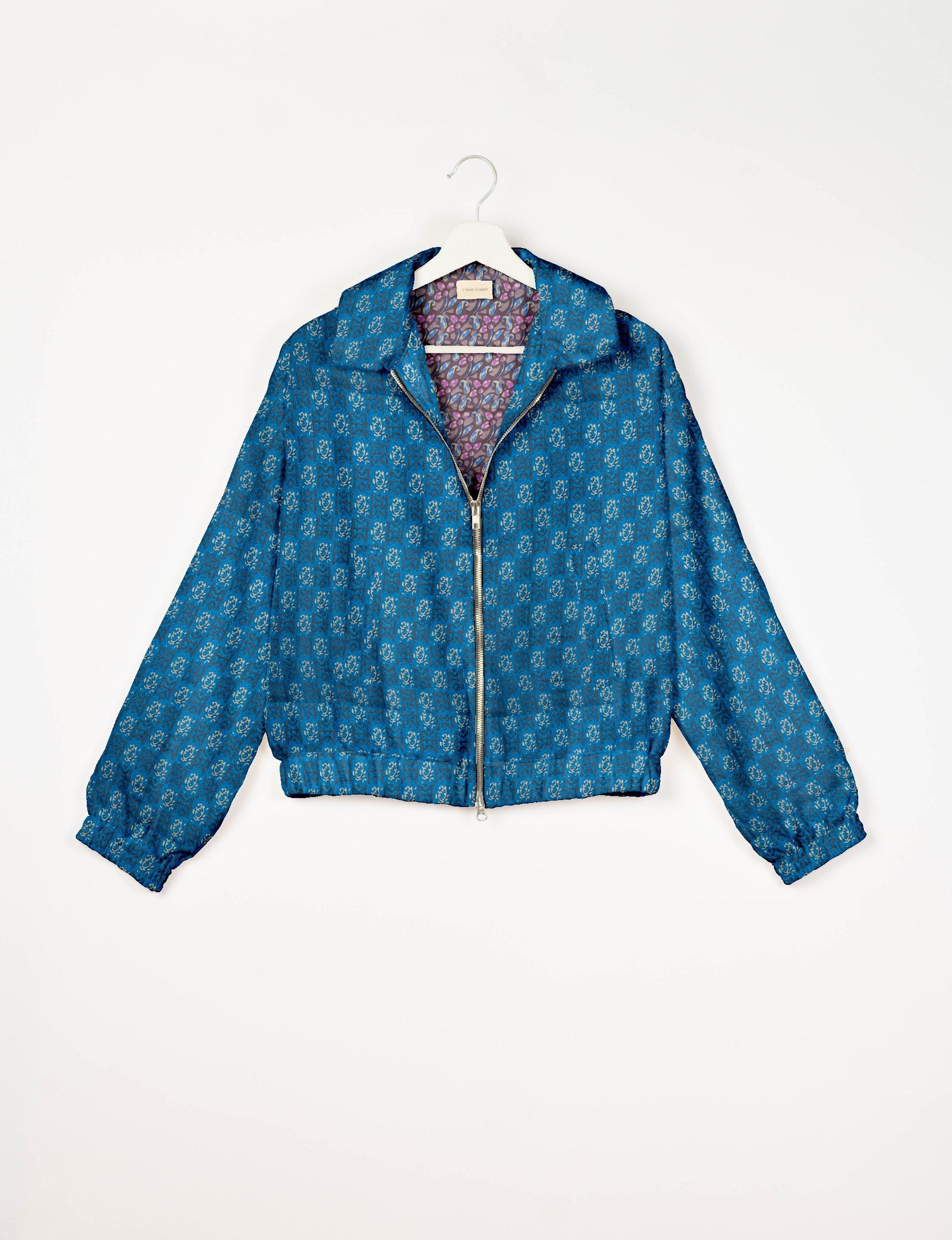 Our Bomber jacket is an iconic wardrobe essential! This military classic features a cropped shape, with elasticated bottom, hem and cuffs. It comes with 2 welt pockets and twin metallic zippers down the front. Also comes with contrast sari print lining and collar flip. Perfect layer for spring days, cool evenings, or air-conditioned workspaces without weighing you down.