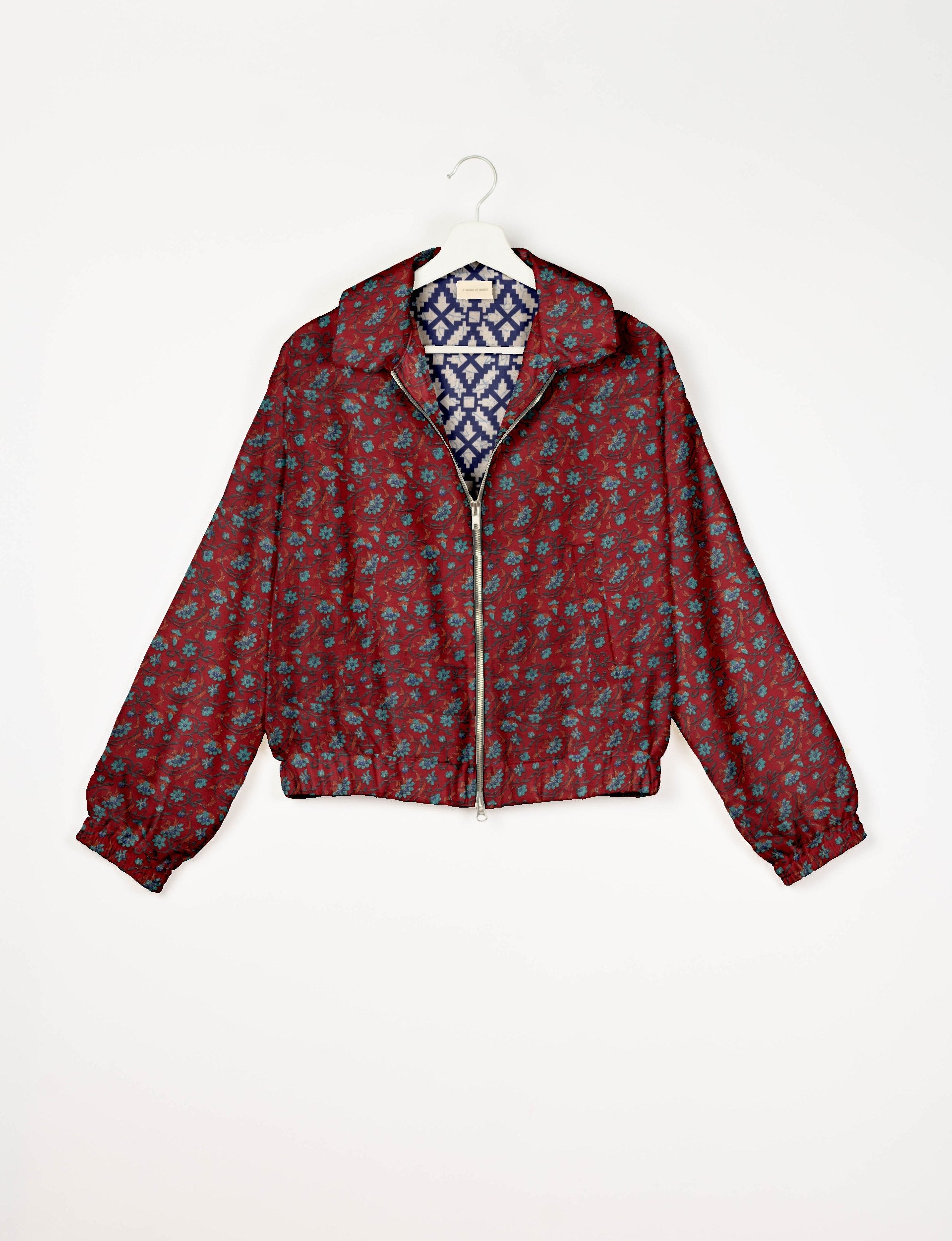 Our Bomber jacket is an iconic wardrobe essential! This military classic features a cropped shape, with elasticated bottom, hem and cuffs. It comes with 2 welt pockets and twin metallic zippers down the front. Also comes with contrast sari print lining and collar flip. Perfect layer for spring days, cool evenings, or air-conditioned workspaces without weighing you down.