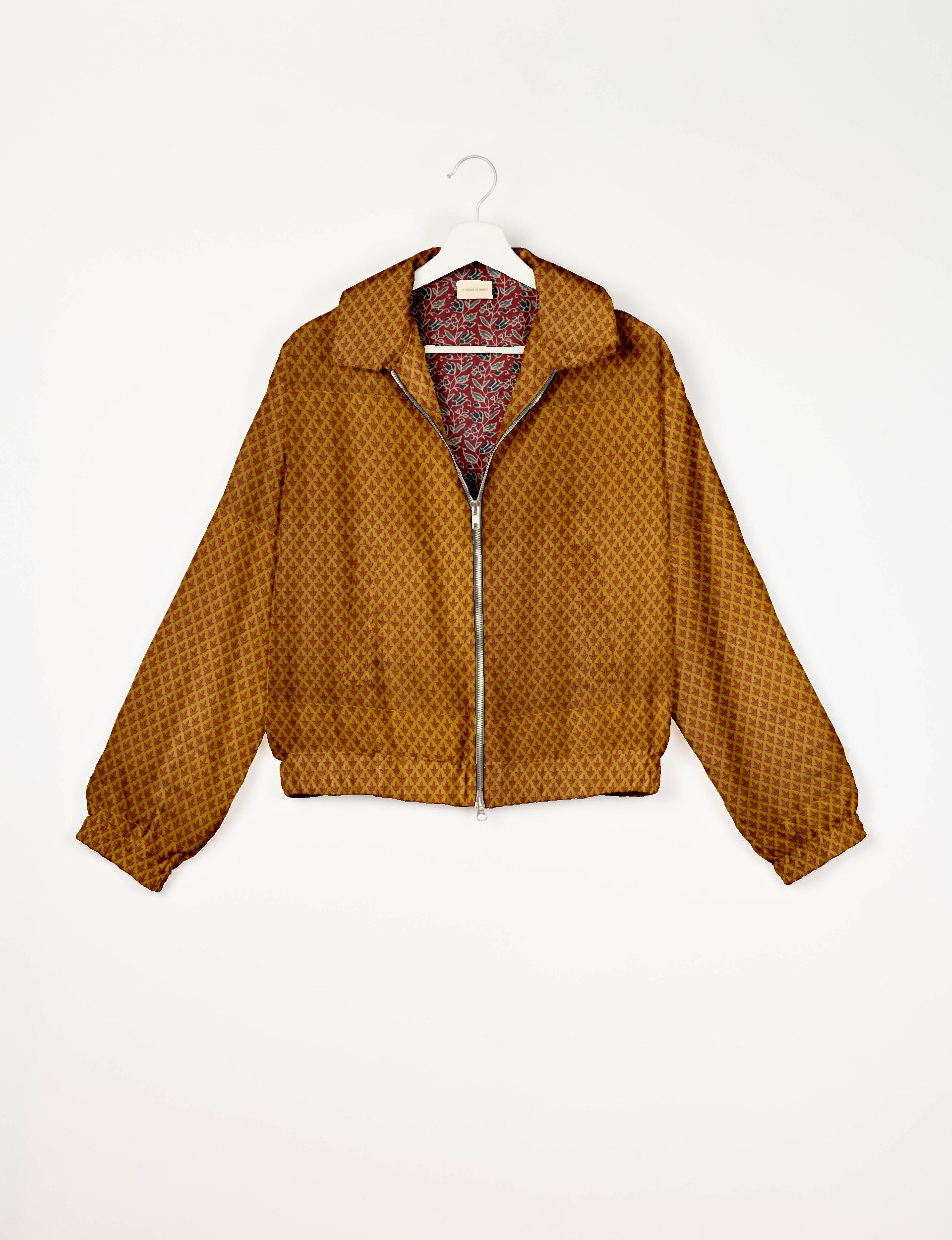 Our Bomber jacket is an iconic wardrobe essential! This military classic features a cropped shape, with elasticated bottom, hem and cuffs. It comes with 2 welt pockets and twin metallic zippers down the front. Also comes with contrast sari print lining and collar flip. Perfect layer for spring days, cool evenings, or air-conditioned workspaces without weighing you down.