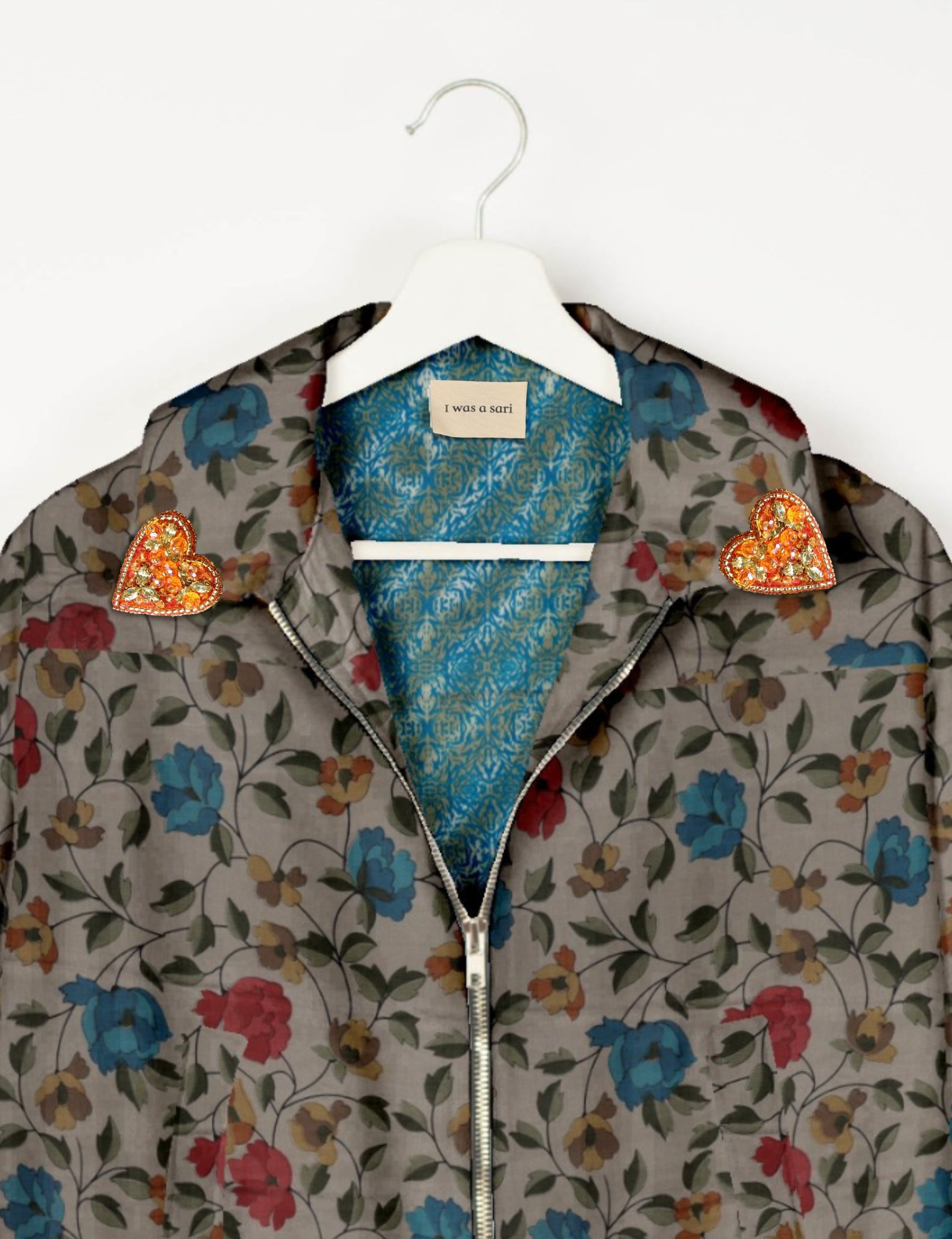 Introducing the Heart Bomber, a limited-edition sustainable fashion statement crafted from upcycled saris. Featuring intricate Aari embroidery hand-stitched by skilled female artisans, this zero waste clothing piece embodies ethical fashion and slow fashion values. Make a conscious choice with this fair trade fashion essential—eco-friendly, repurposed, and made from recycled materials. Elevate your wardrobe with carbon-neutral fashion that tells a story of artistry and sustainability. Lighting and screens may cause slight variations in color appearance.