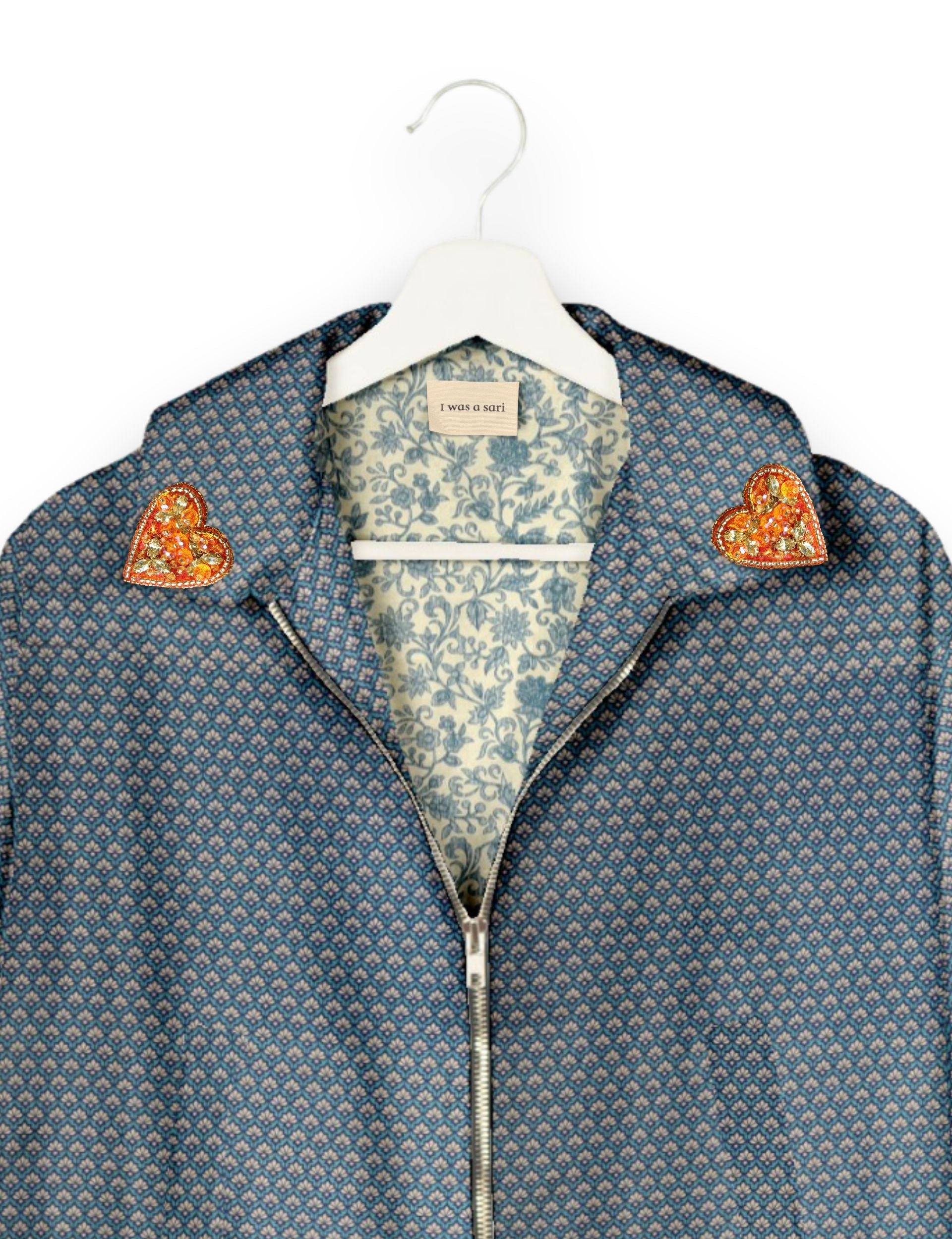 GOLD HEART BOMBER JACKET - Blue Leaves