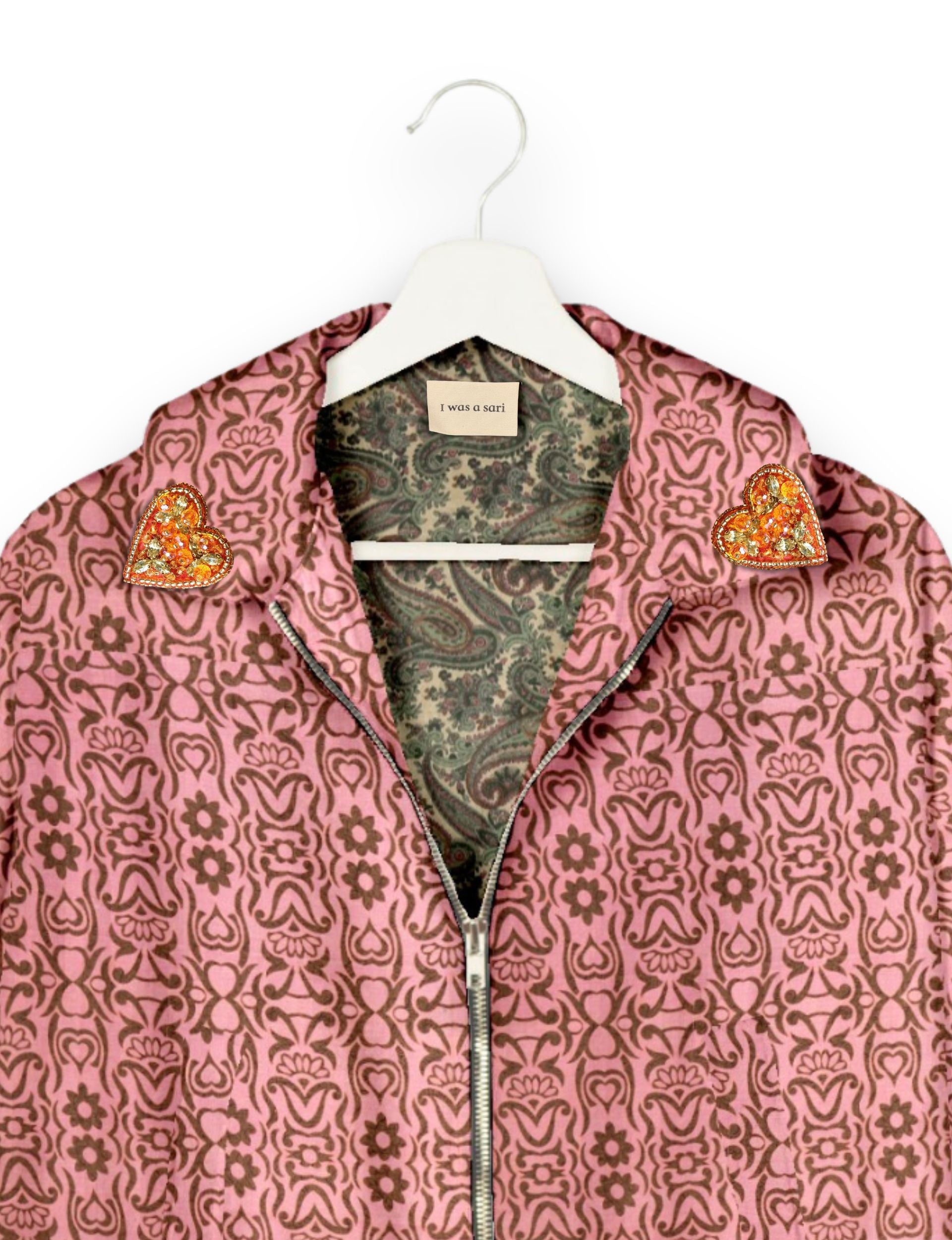 GOLD HEART BOMBER JACKET - Pink Paisley