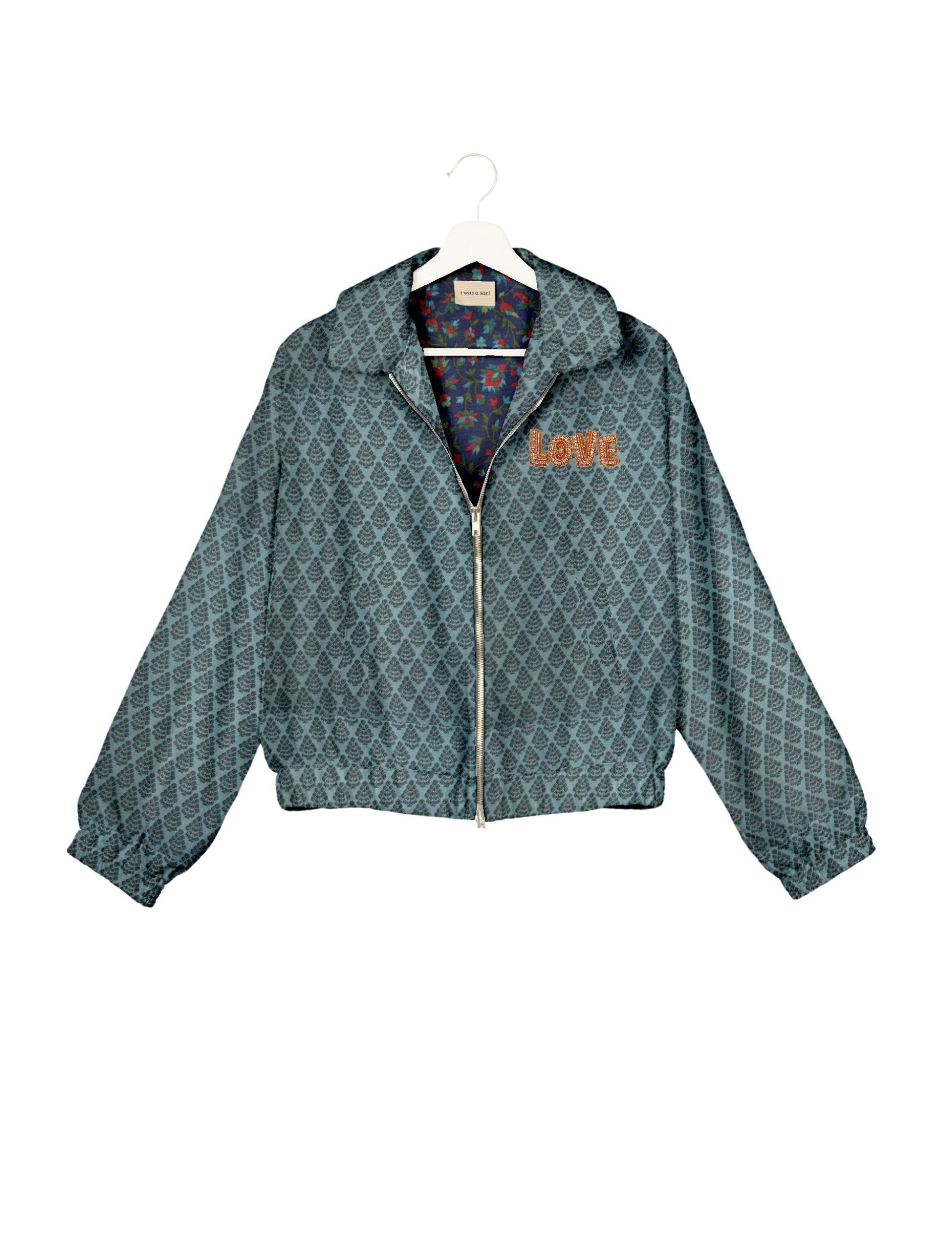 GOLD LOVE BOMBER JACKET - Blue Tropical