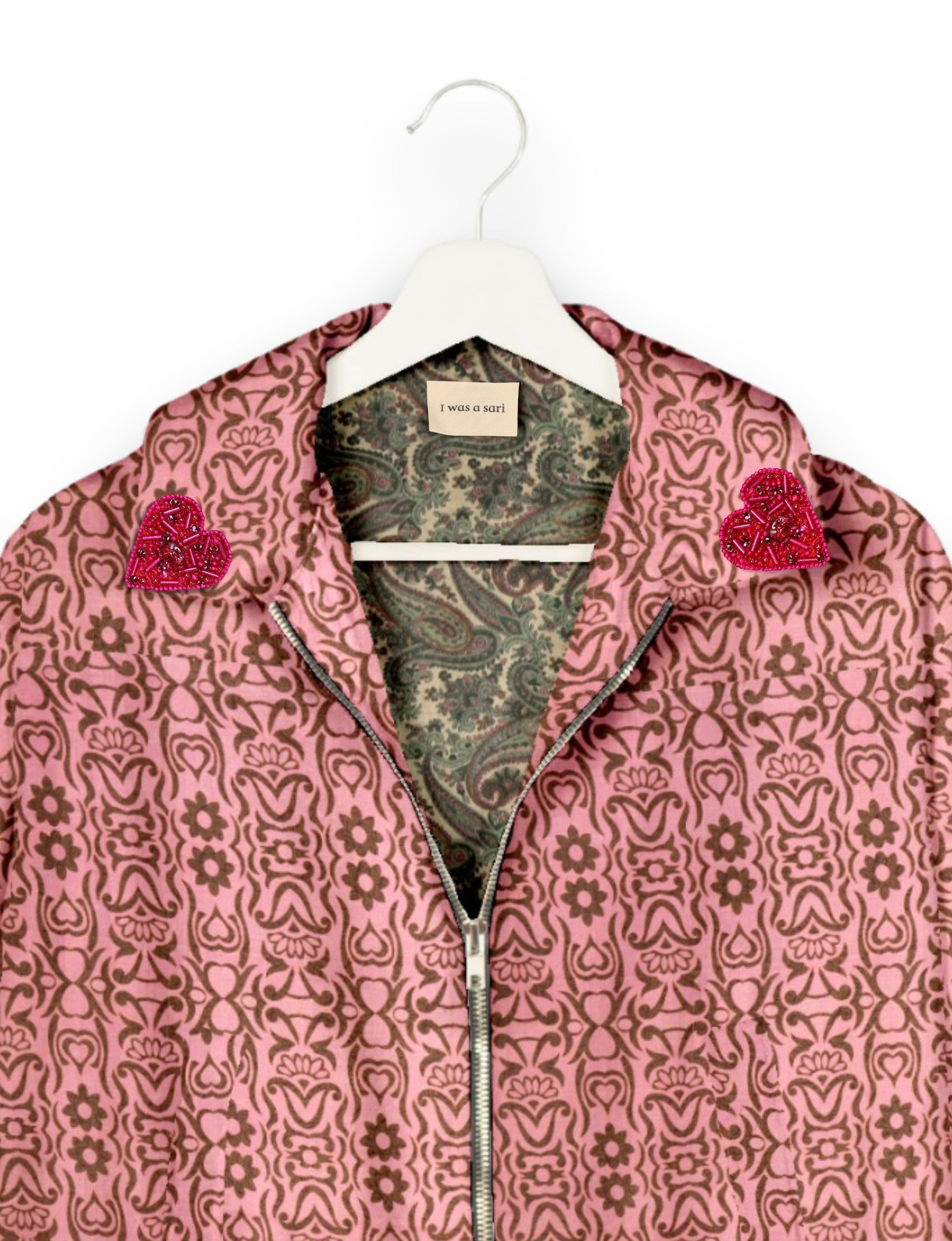 GOLD HEART BOMBER JACKET - Pink Paisley