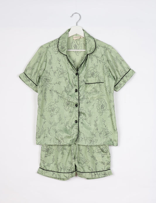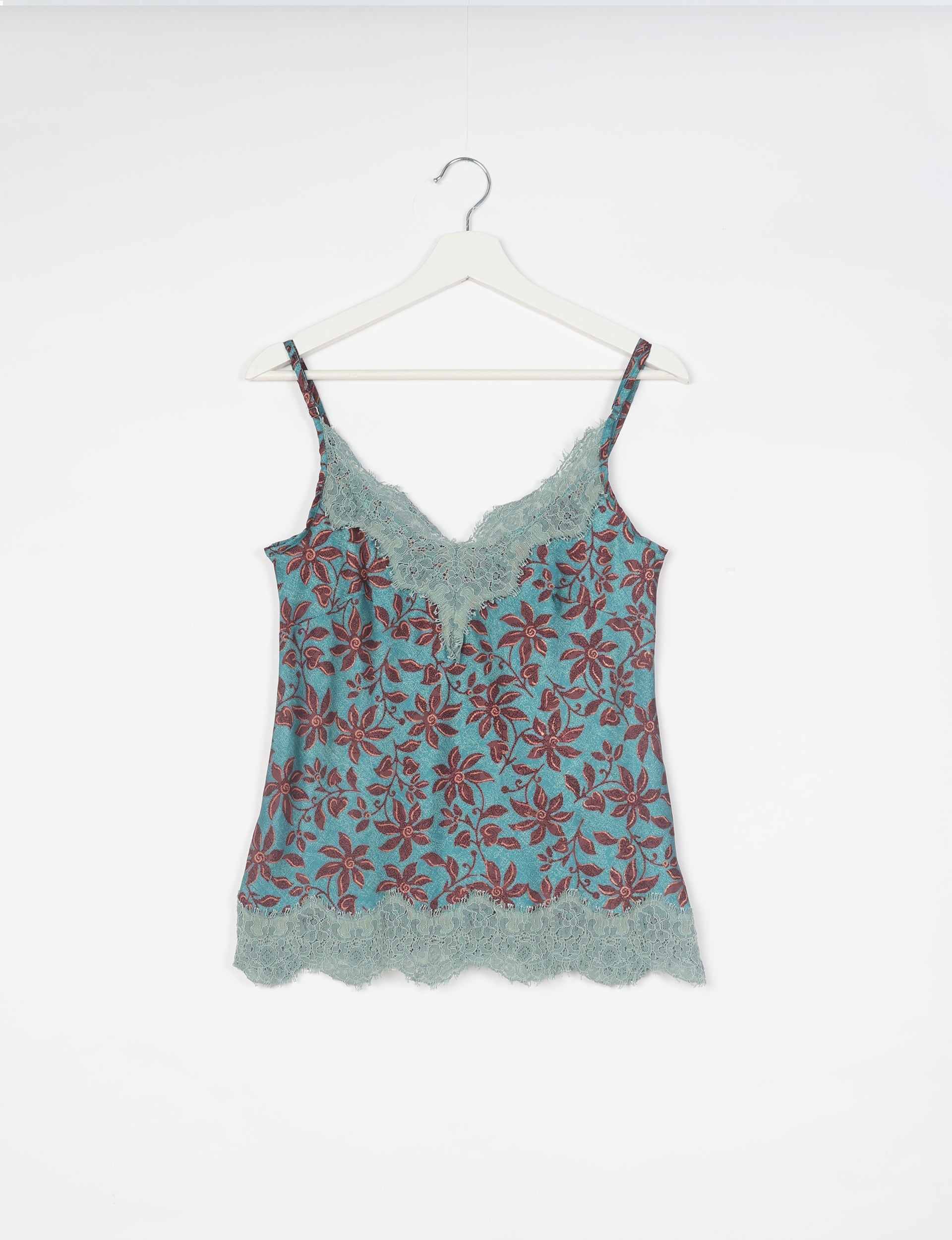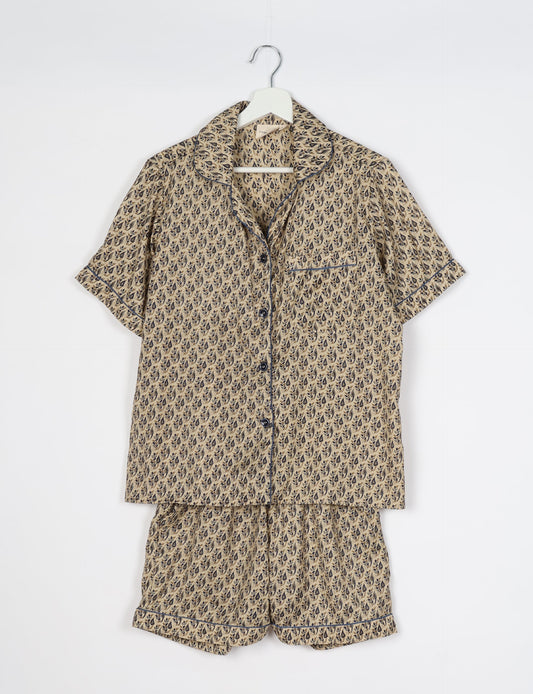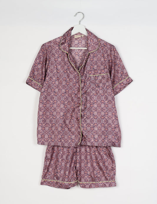 Two-piece loungewear set consisting of a camisole and matching shorts. The cami features a V-neckline, thin adjustable shoulder straps, and is trimmed with eyelash lace along the neckline and hem. The shorts have an elasticated waistband with a functional drawstring and a soft, straight-leg silhouette.