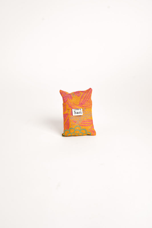 I'm not made from virgin fabrics and dyes, so my carbon footprint, pollution and water usage is way lower than other products. Instead, I'm made with circular production methods, from waste fabric which already existed. I turned into an I was a Sari instead of becoming landfill. Now I'm looking forward to my second life, maybe with you.