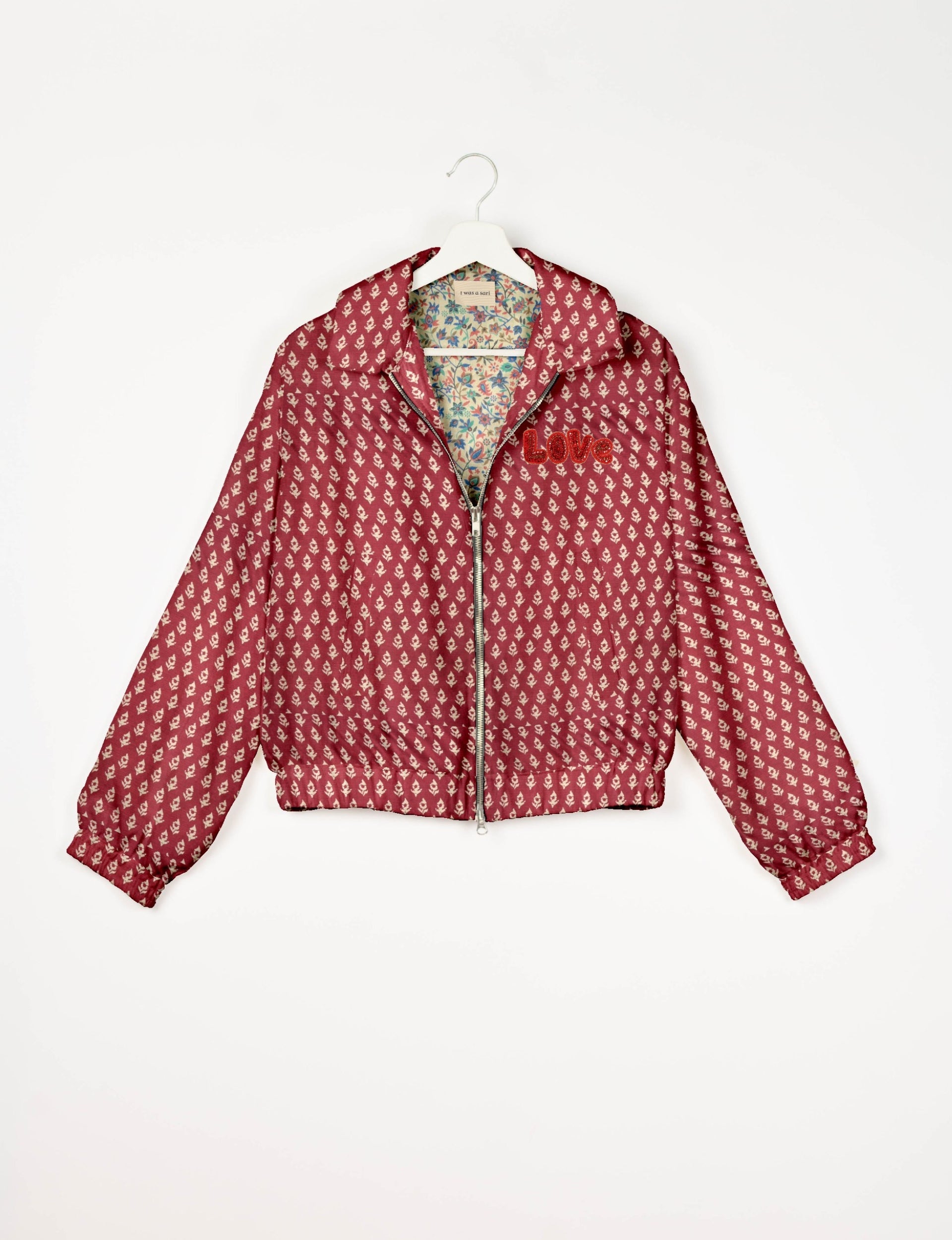 A special edition of the Classic Bomber , elevated with intricate handcrafted Aari embroidery that spells out "Love". And by our female artisans no less. Crafted from upcycled saris, this jacket is more than just a statement piece—it's a wearable story of artistry, tradition, and conscious living.