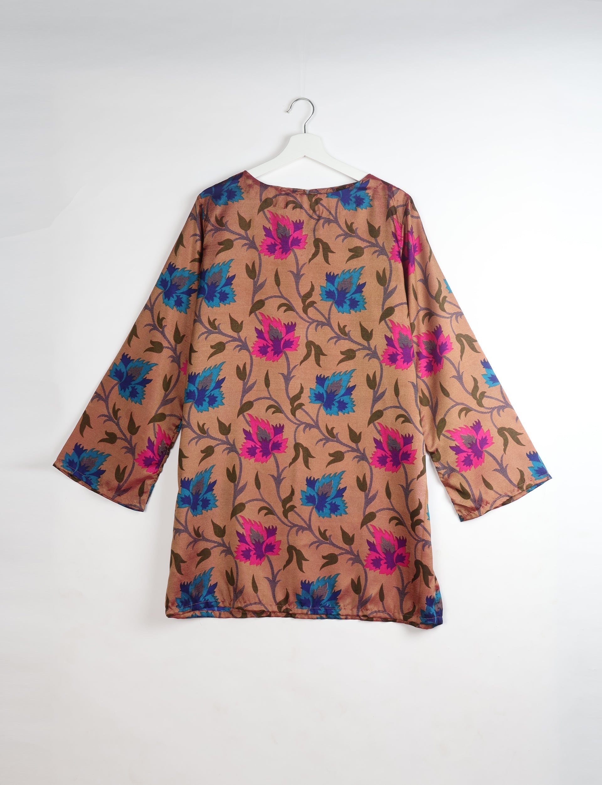 I'm made from light and silky flowing fabric. There is usually only one of me, in my specific print and In case of garments I come in limited sizes only. Please search by size to find the best fit for you. See our size guide.