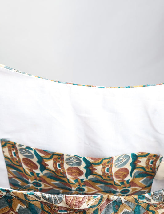 I'm not made from virgin fabrics and dyes, so my carbon footprint, pollution and water usage is way lower than other products. Instead, I'm made with circular production methods, from waste fabric which already existed. I turned into an I was a Sari instead of becoming landfill. Now I'm looking forward to my second life, maybe with you.