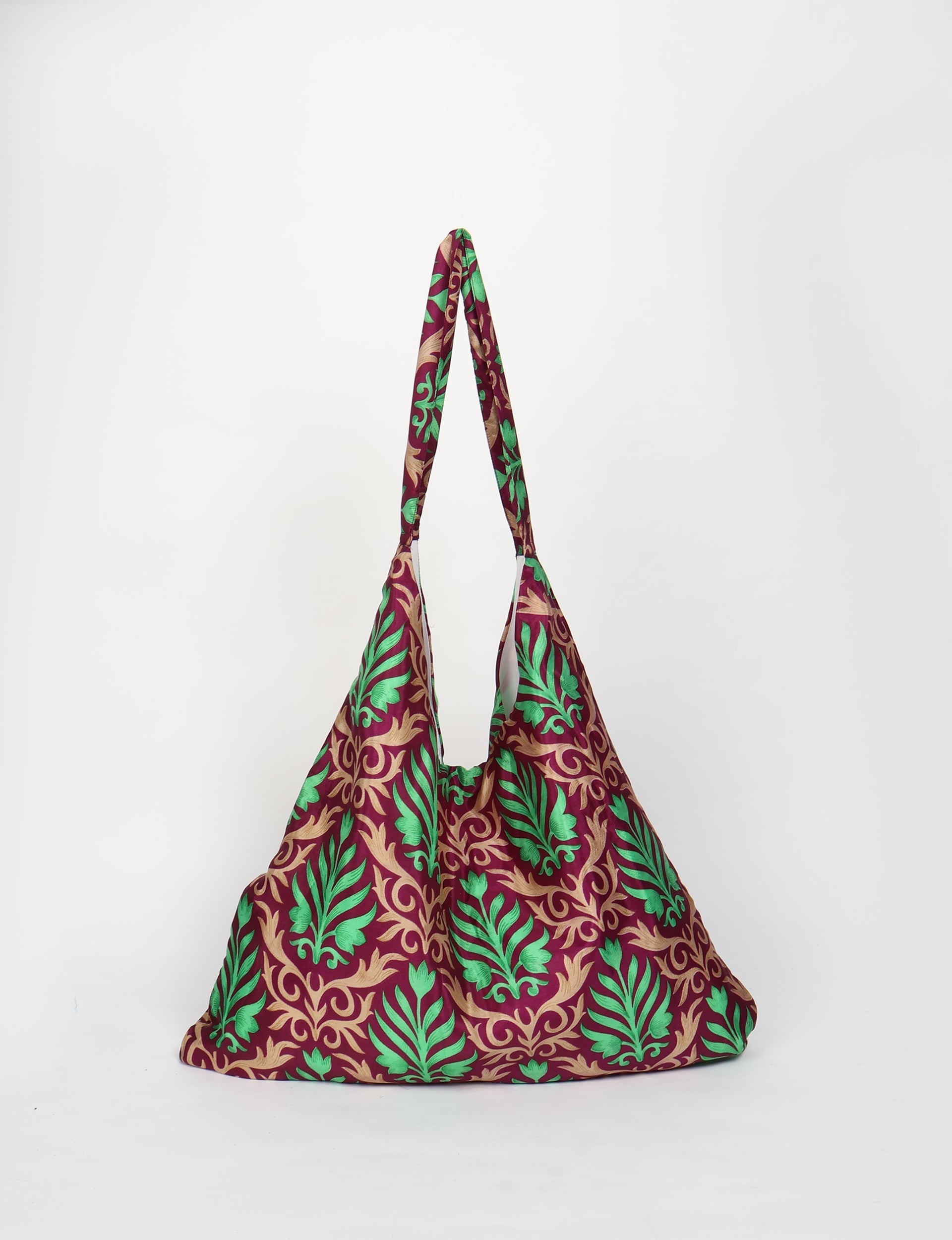 I'm not made from virgin fabrics and dyes, so my carbon footprint, pollution and water usage is way lower than other products. Instead, I'm made with circular production methods, from waste fabric which already existed. I turned into an I was a Sari instead of becoming landfill. Now I'm looking forward to my second life, maybe with you.